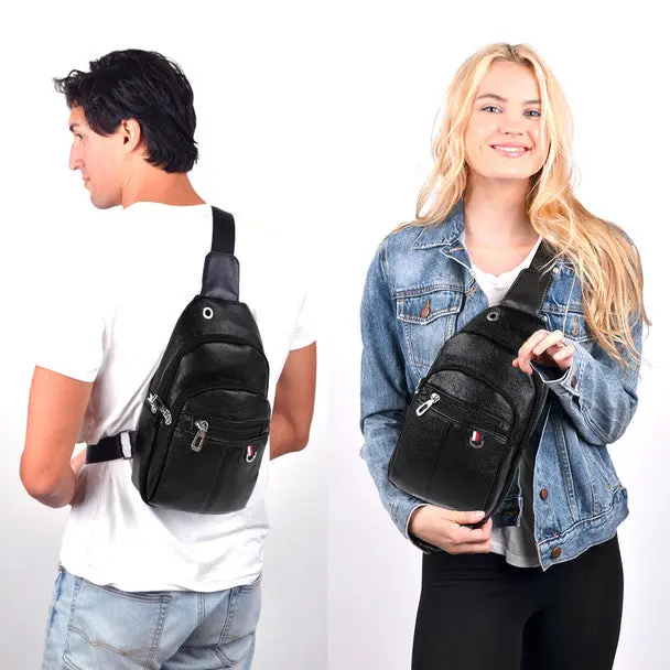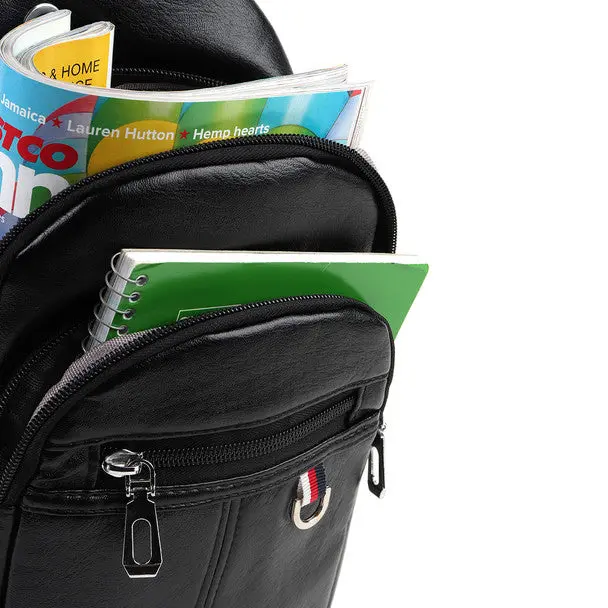 Versatile Vegan Leather Crossbody Sling Bag with Earphone Hole - Hands-Free Music