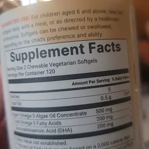 ·Each pouch includes 240 vegetarian softgels, providing 500mg of algae oil and 200mg of DHA (omega-3) per serving. Formulated for children ages 6 and up, with a softgel format suitable for daily use.