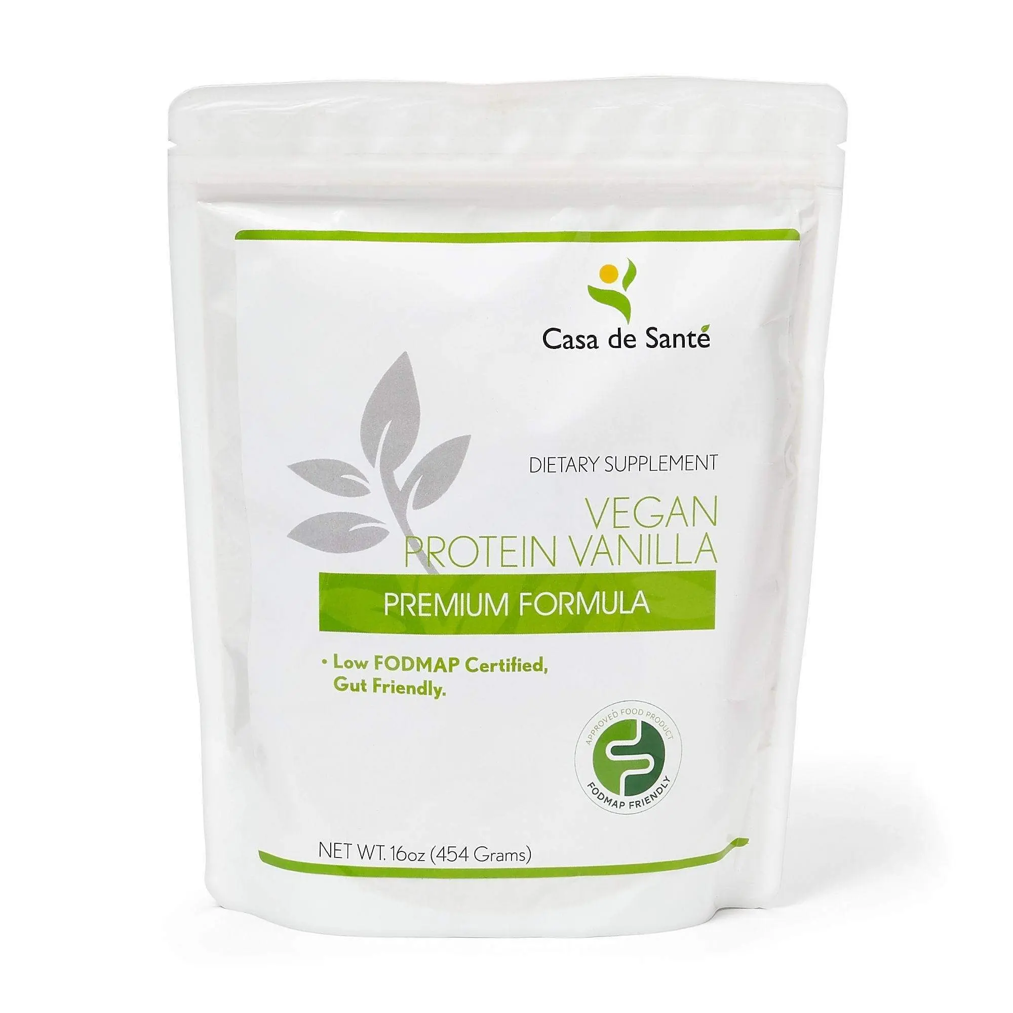 This 16 oz low FODMAP Certified, Gut Friendly Vegan Protein Vanilla Powder is your all-in-one plant-based low FODMAP protein shake, gluten free without dairy or any soy ingredients, all natural, no artificial ingredients.