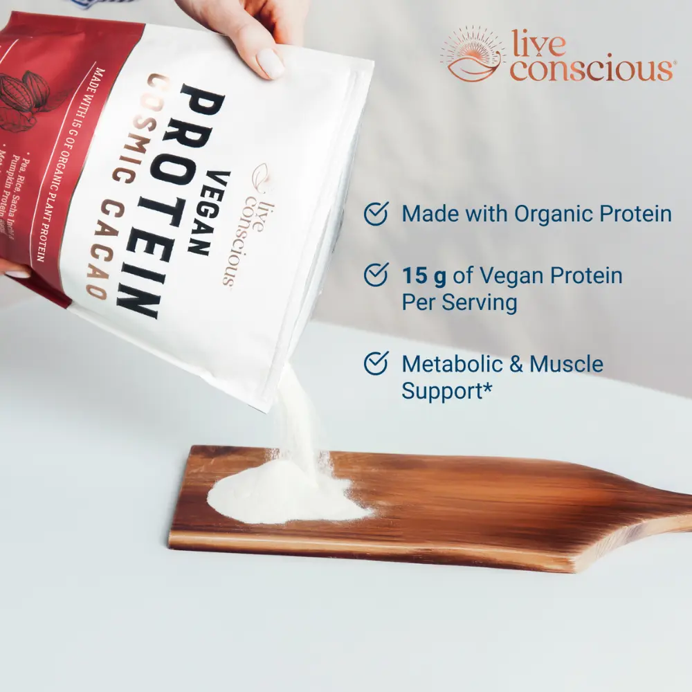 5. Live Conscious Vegan Protein Powder Flavored Drink Mix - Plant-Based Vegan Protein Blend - Pea, Brown Rice, Pumpkin, Sacha Inchi