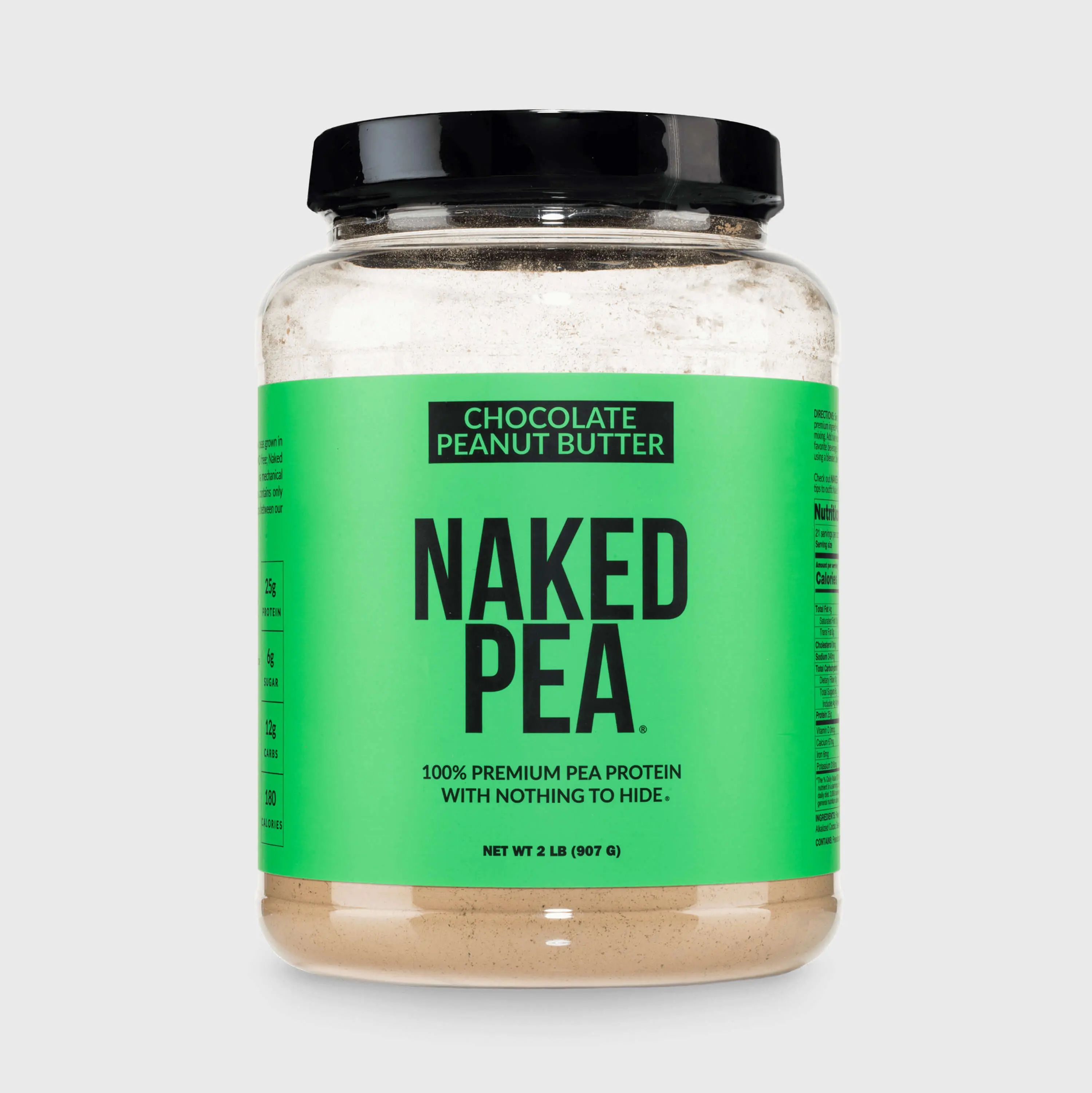 Naked Pea Chocolate Peanut Butter Protein Powder 2LB - Vegan Gluten-Free Dairy-Free Soy-Free GMO-Free with Organic Coconut Sugar - Free of Additives and Artificial Sweeteners - 20g Protein, 12g Carbs - Only 6 Ingredient