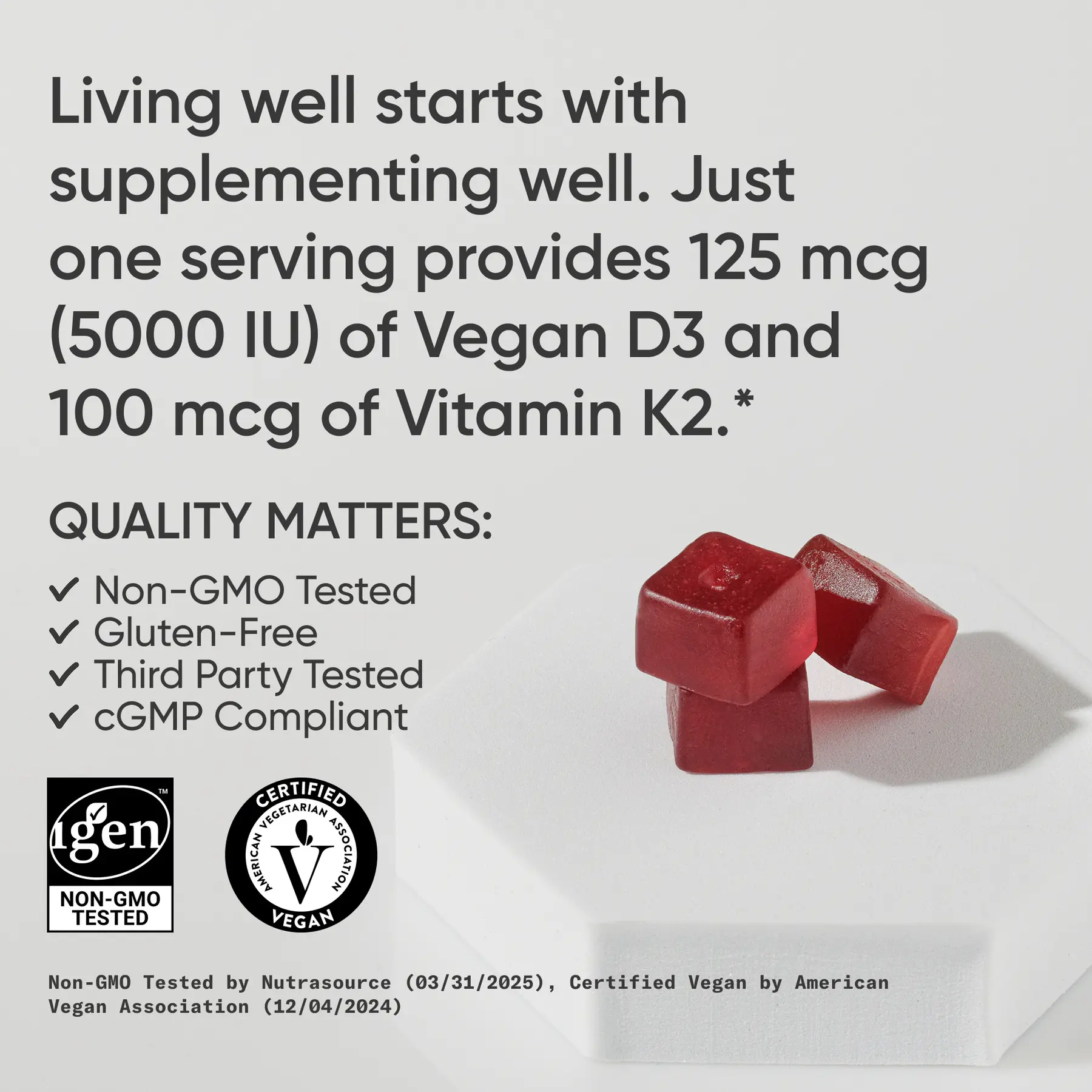IngredientsD3 + K2,Vitamin D, Vitamin K2,OTHER INGREDIENTS: Inulin syrup, allulose, pectin, natural flavors, citric acid, fruit juice (for color).