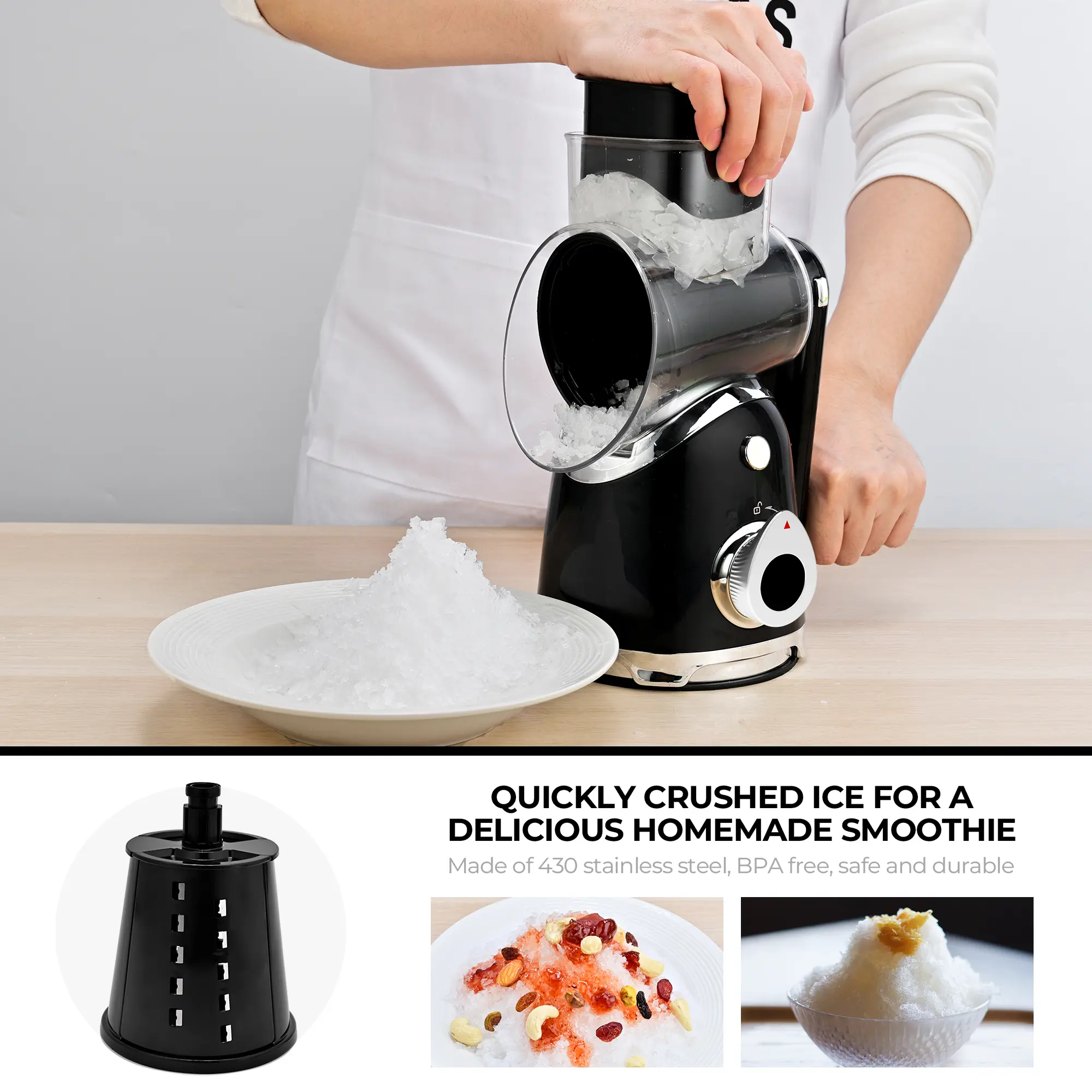Suction isn't good. Difficult to turn when shredding cheese. Not what I was expecting. Food processor is so much better. Would not recommend and would not buy again
