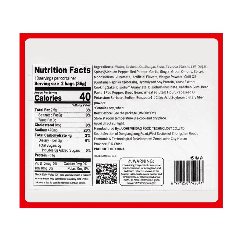 ·Water, Konjac Flour, Rapeseed Oil, Starch, Millet Pepper, Salt, Sugar, Pickled Ginger, Soy Protein, Spice, MSG, Disodium Guanylate and Disodium Inosinate, Citric Acid, Sodium Lactate, Lactic Acid, Sodium Dehydrogenate, Artificial Flavors.