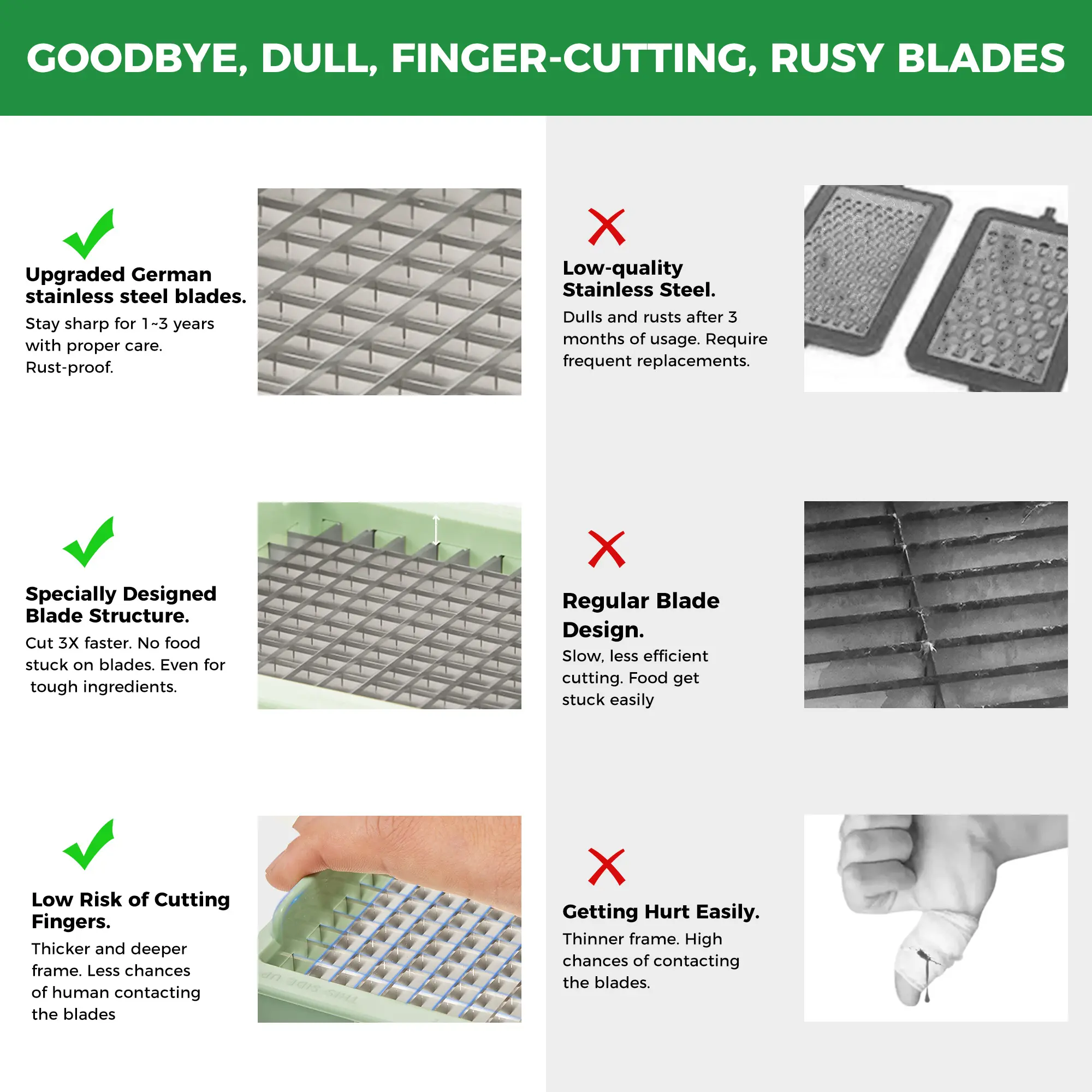 ·Multiple Safety Features, Upgraded Protection! The new safety lock securely holds the blade 1cm below the surface, and the higher, wider finger guard offers all-around protection for your hands, making chopping safer than ever.