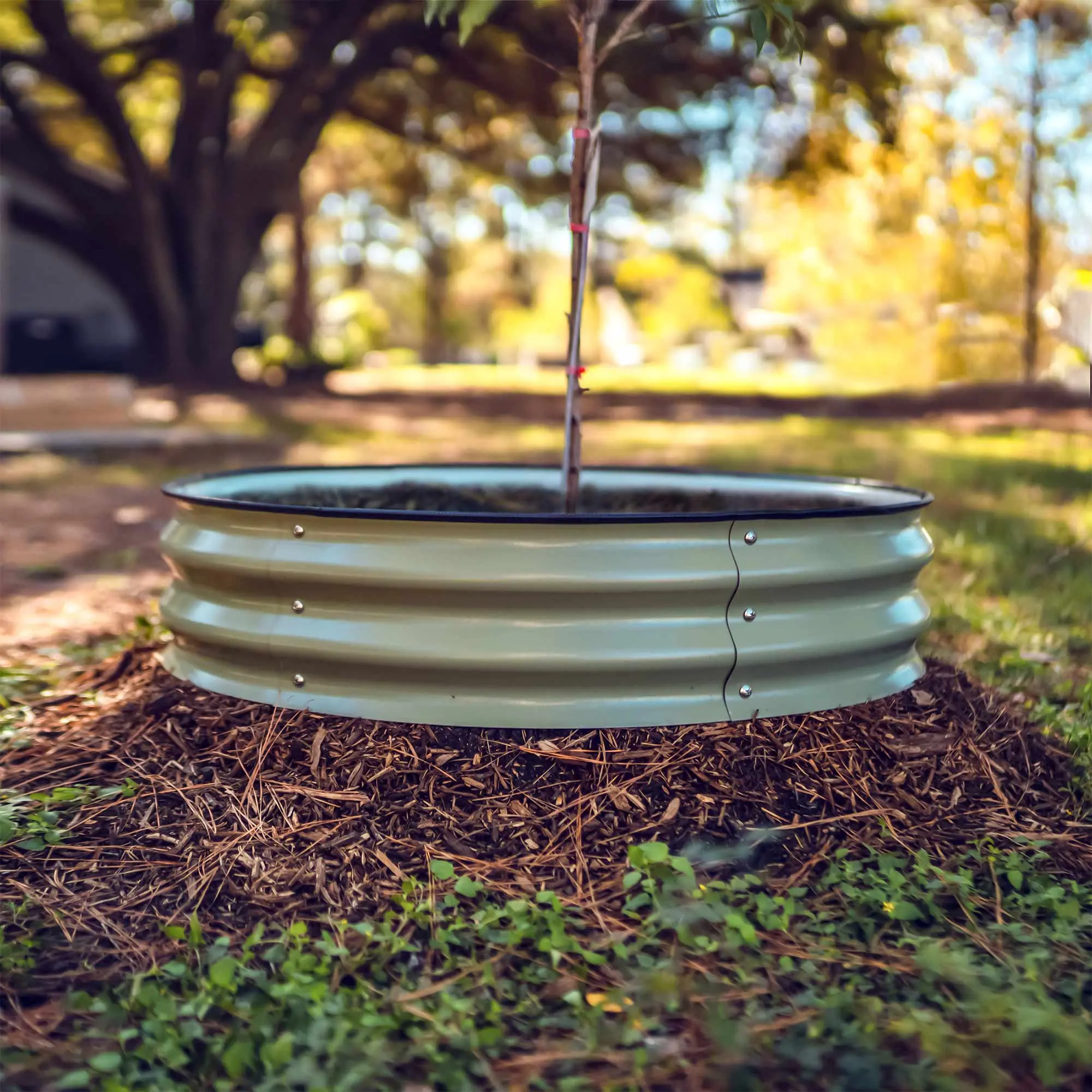 Perfect for containing mulch around the tree. Great landscaping tool to help with moisture retention for fruit trees.