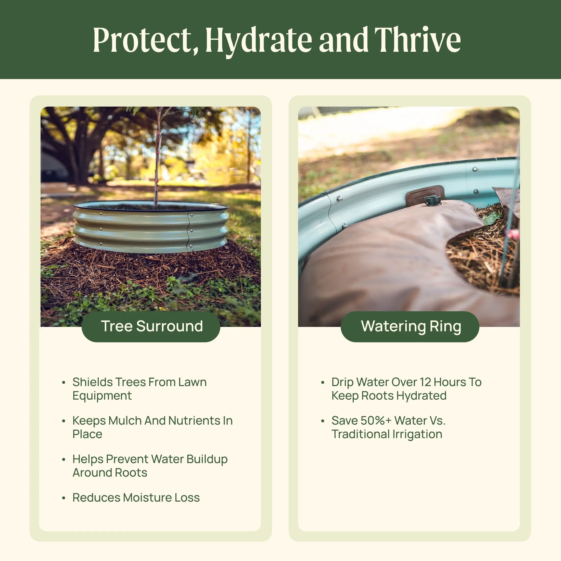 Protects my young trees from my son’s RC cars and monster trucks. The water bladder also helps retain moisture in the AZ dry soil and acts as a barrier to stop the neighbor’s cats from using the soil as a litter box.