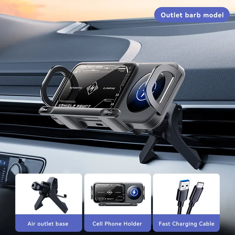 Choose between two easy installation options: a vent clip for standard car air outlets or a suction cup dashboard mount for universal fit. The smart auto-sensing clamp grabs your phone instantly, while built-in safety features protect against overheating and overcharging. It even supports multiple phone models, including iPhones, Google Pixels, and more.