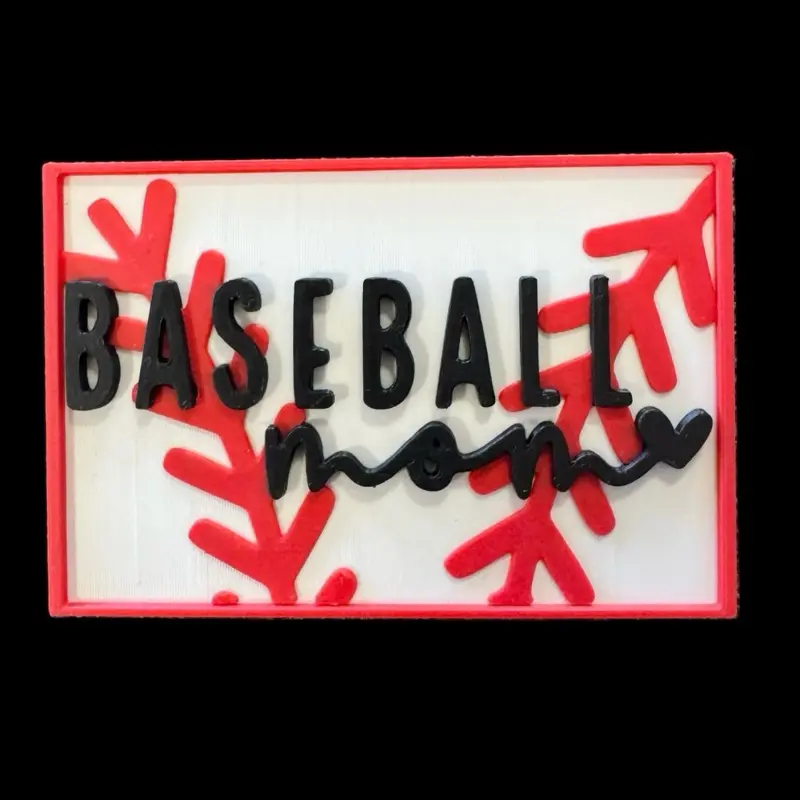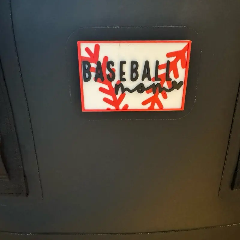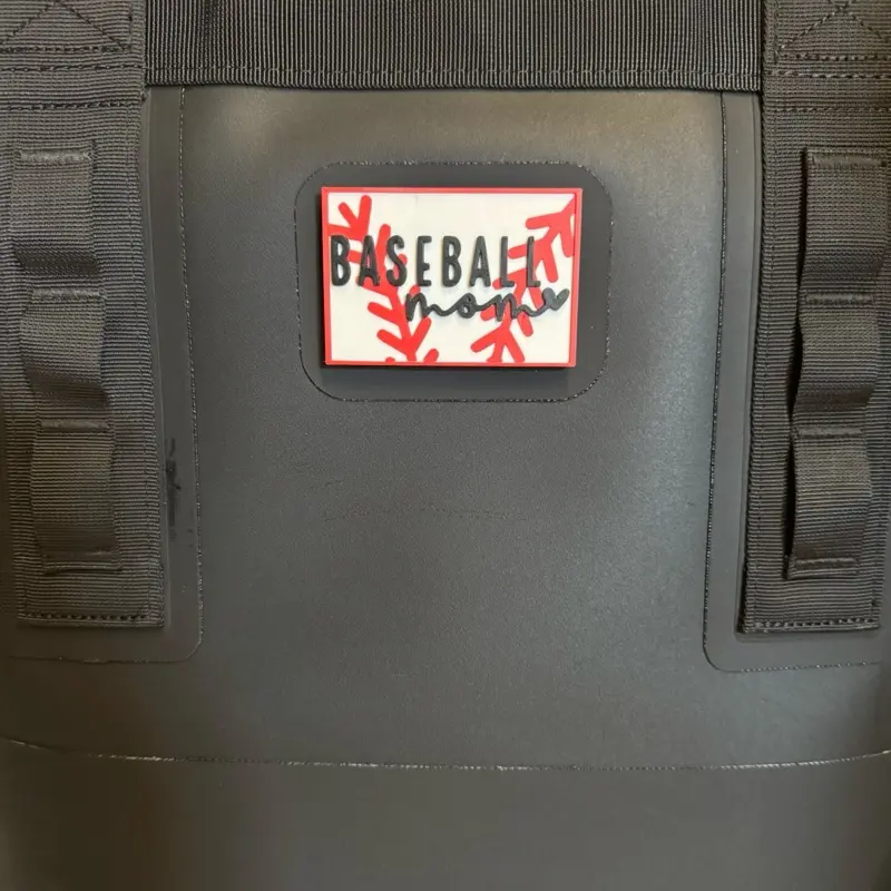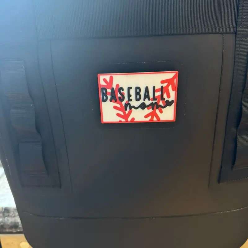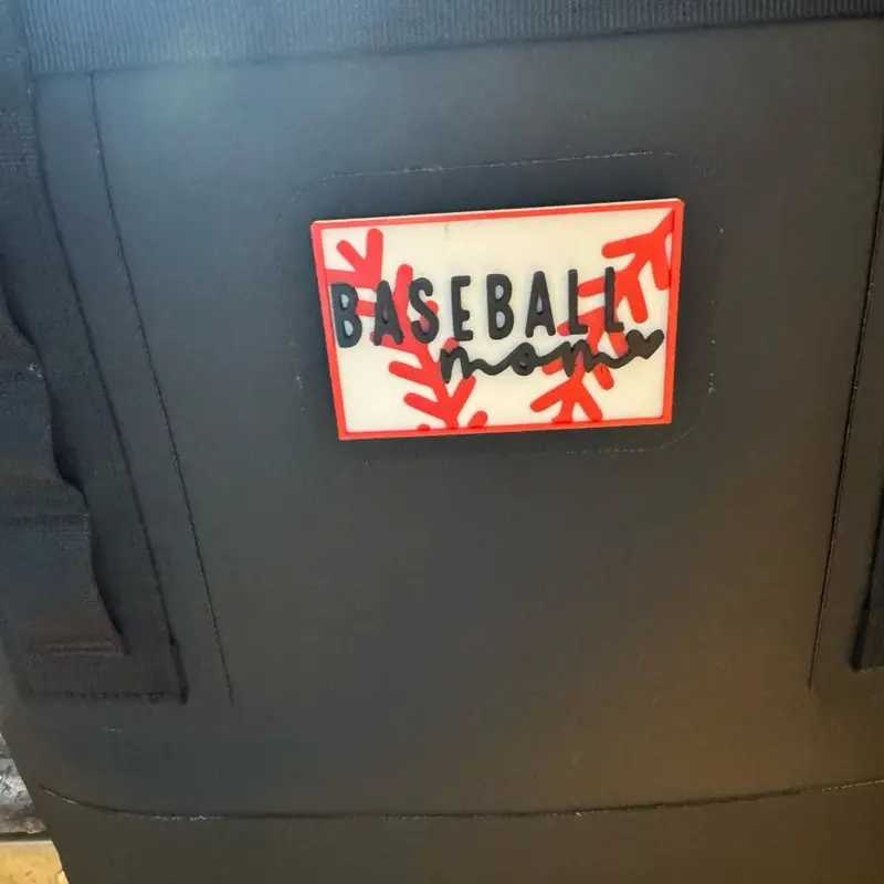 2”x3” baseball Mom Velcro bag / tote patch with adhesive Velcro hook piece on back to stick to bags with loop pieces