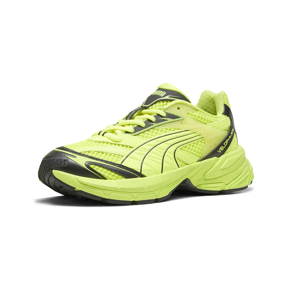 The Velophasis was created by blended references from a similar design aesthetic to create something new and authentic. Its silhouette is a 2000s hybrid loosely inspired by PUMA’s heritage performance running range. This brutal style blends a synthetic and breathable mesh on the upper. This execution features a breathable mesh upper along with gradient detailed overlays and a translucent molded Thermoplastic Polyurethane
