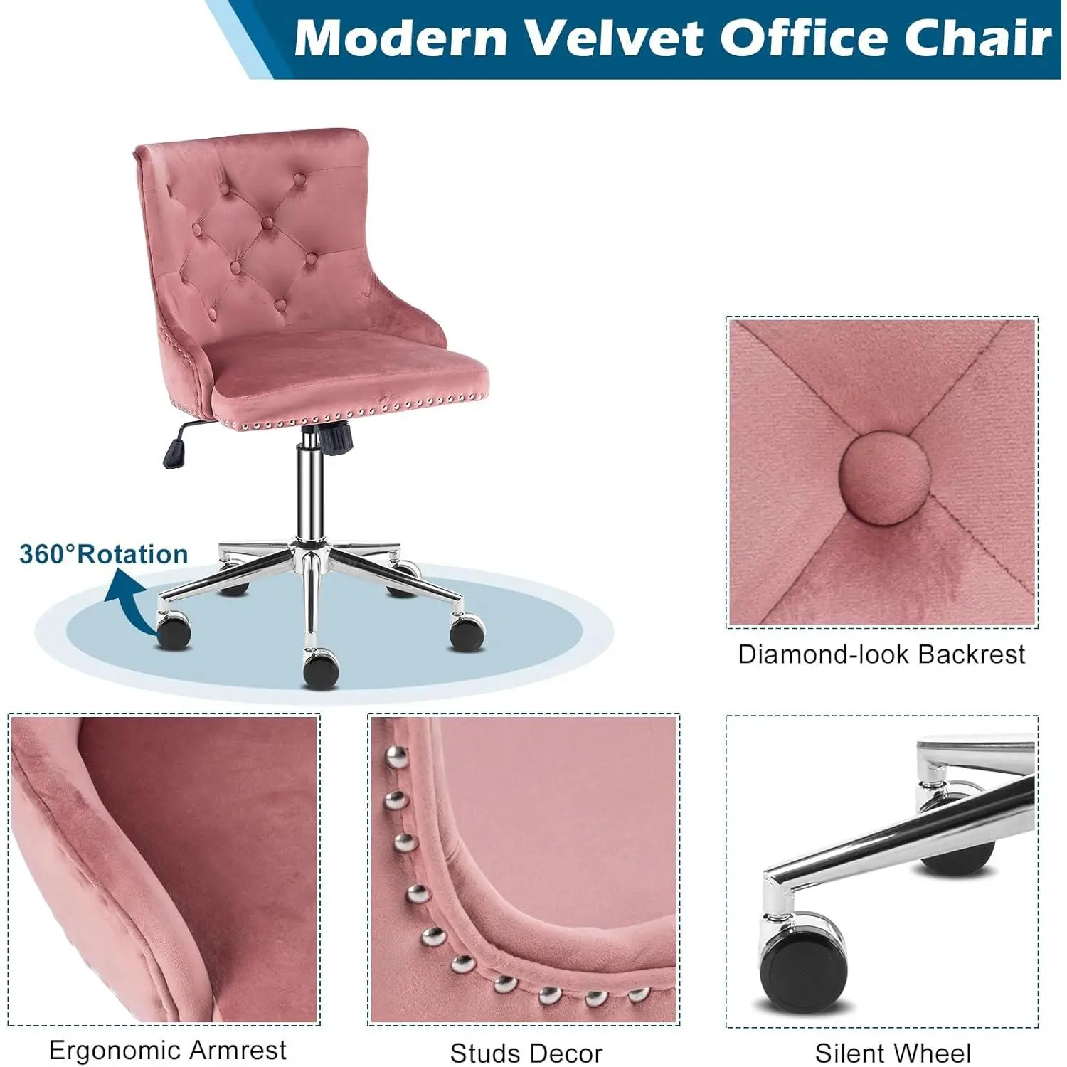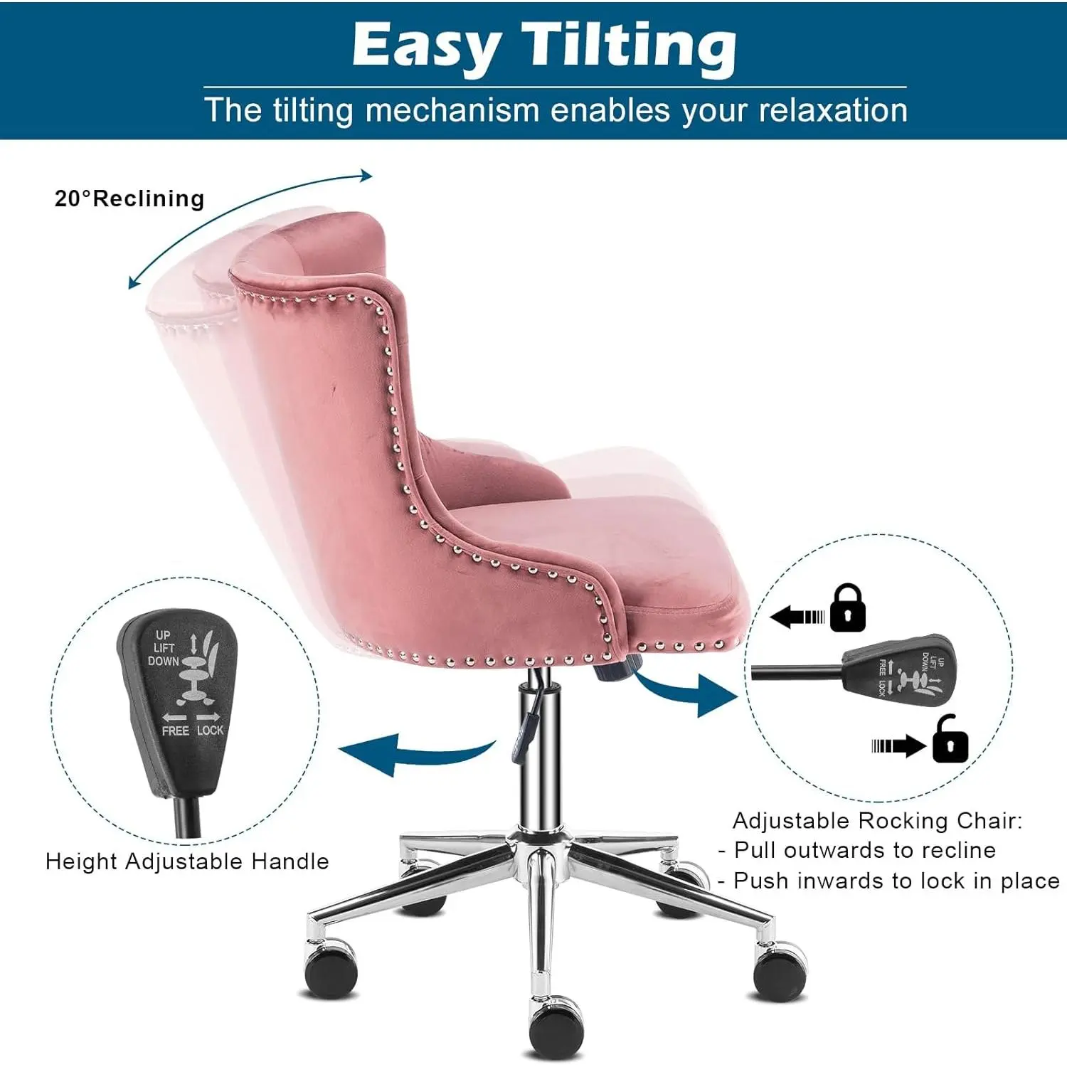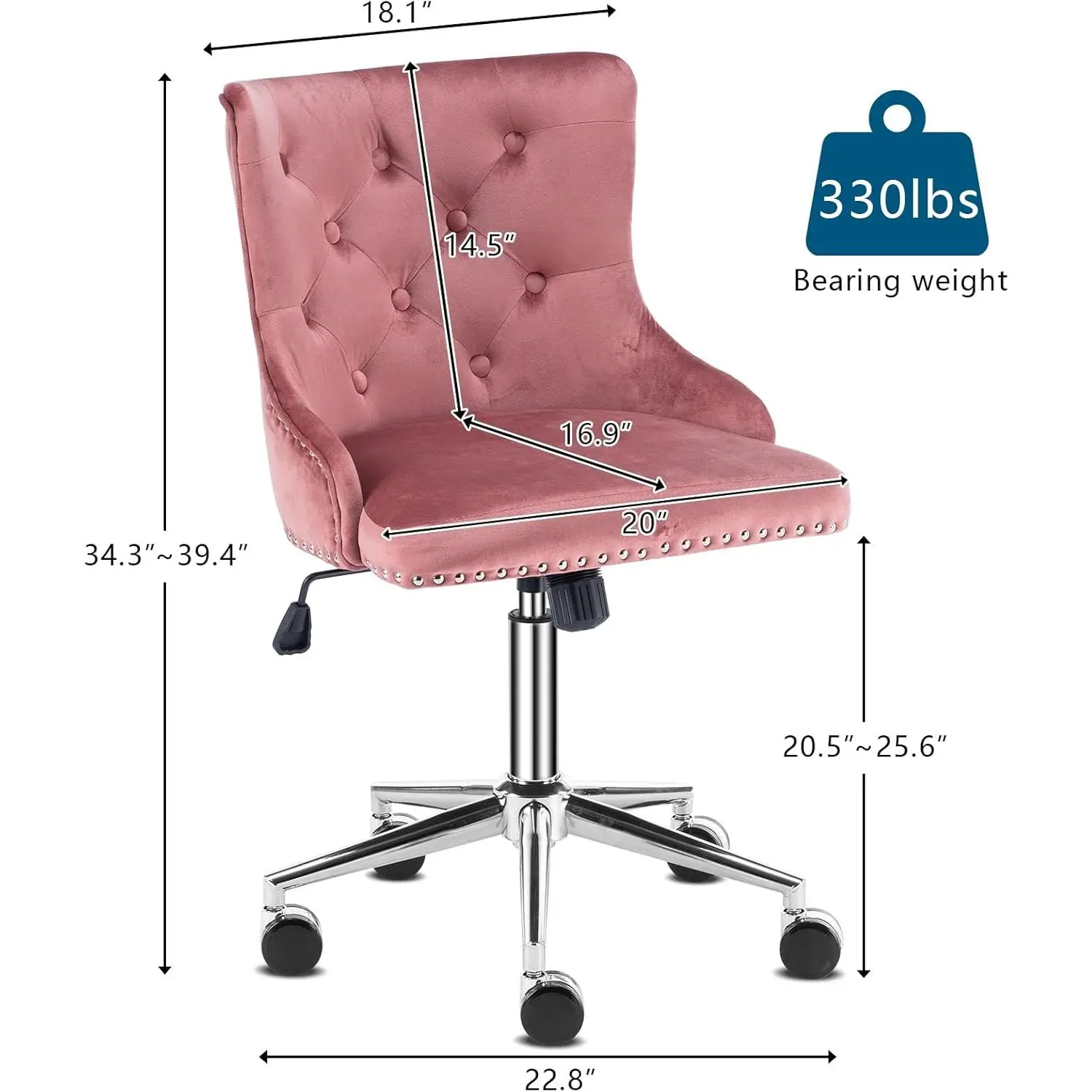 VINGLI Upholstered Desk Chair, Velvet Office Chair Swivel Chair with Wheels