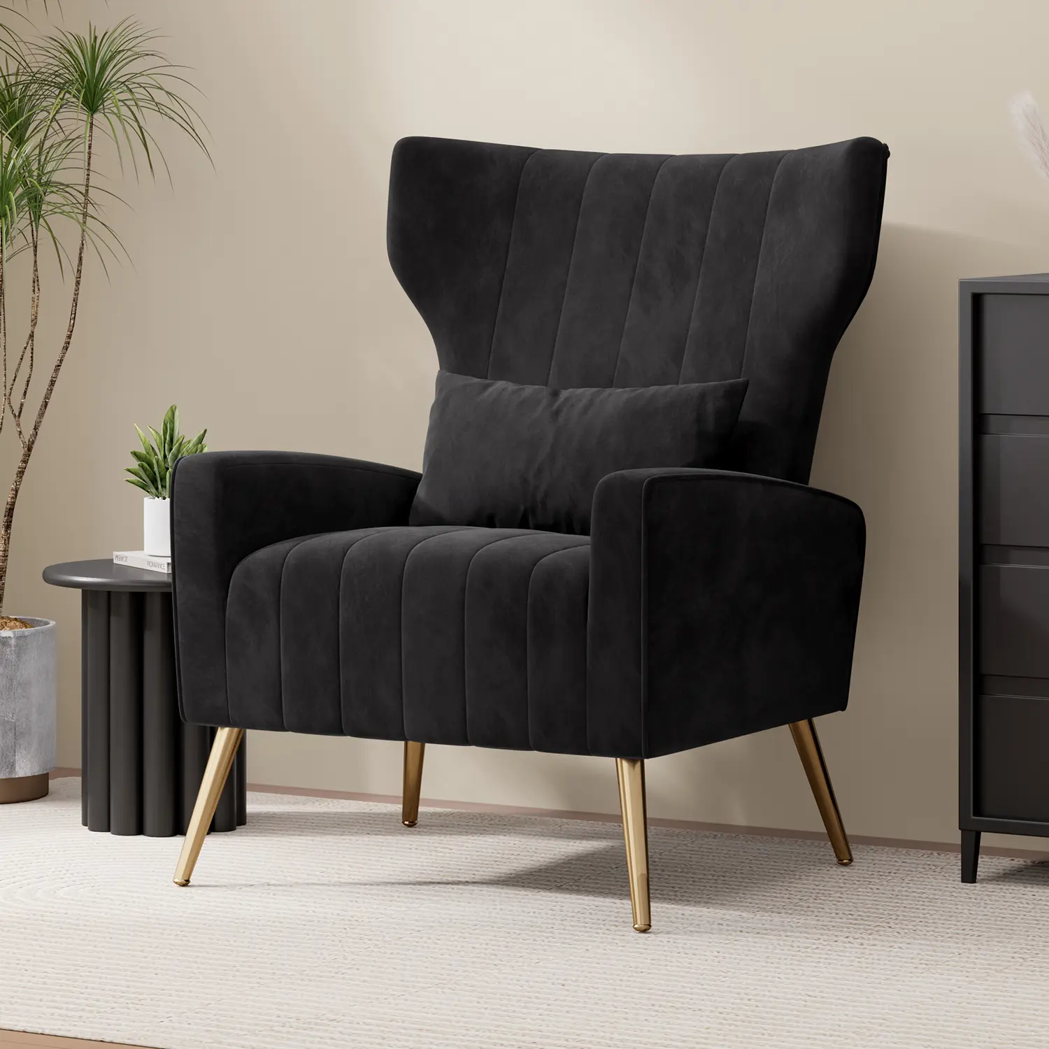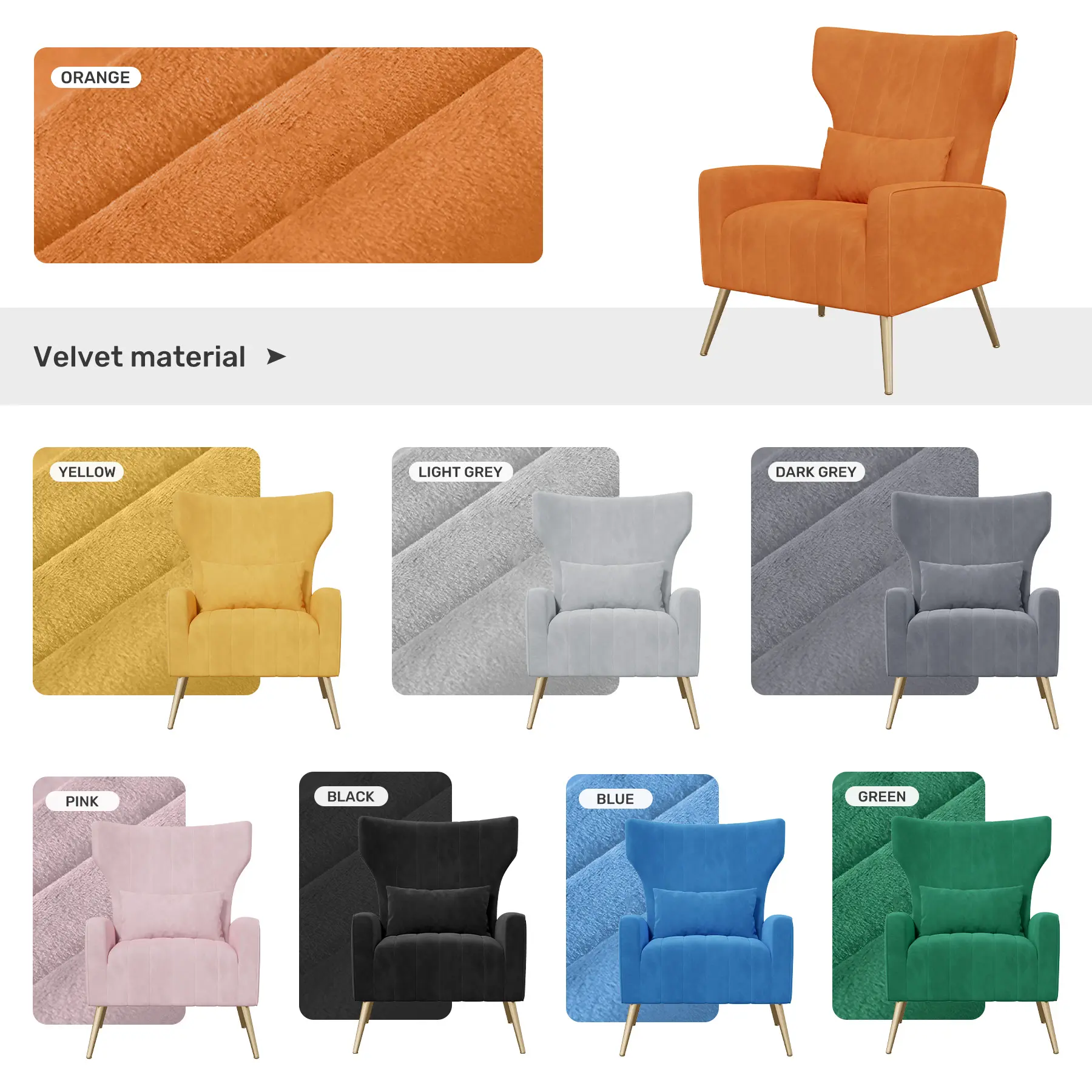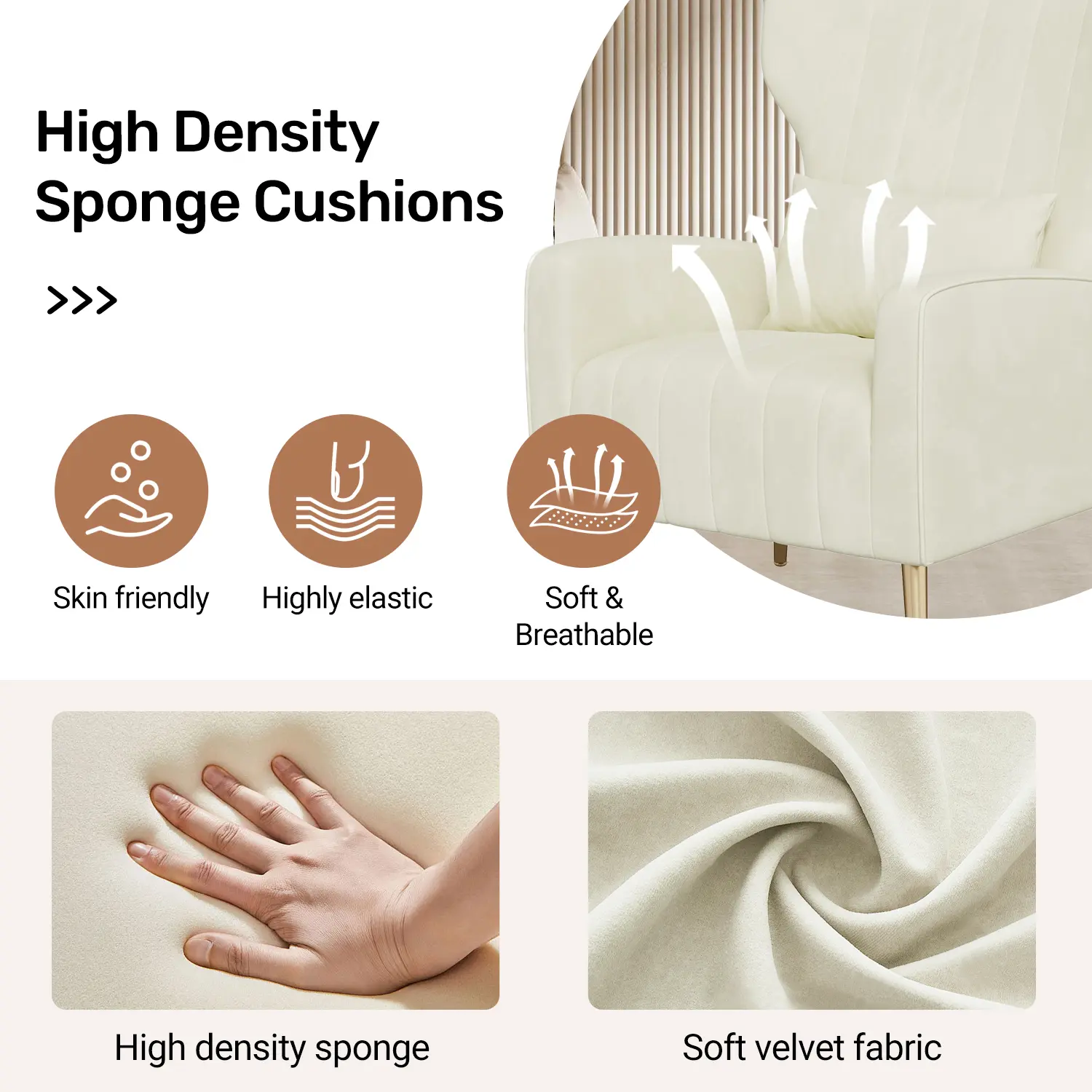 ·【VELVET FABRIC】:This bedroom accent chair is made of cozy and skin-friendly velvet fabric, which has a premium texture and is soft and durable. Its comfortable to the touch and give you a better sitting experience.