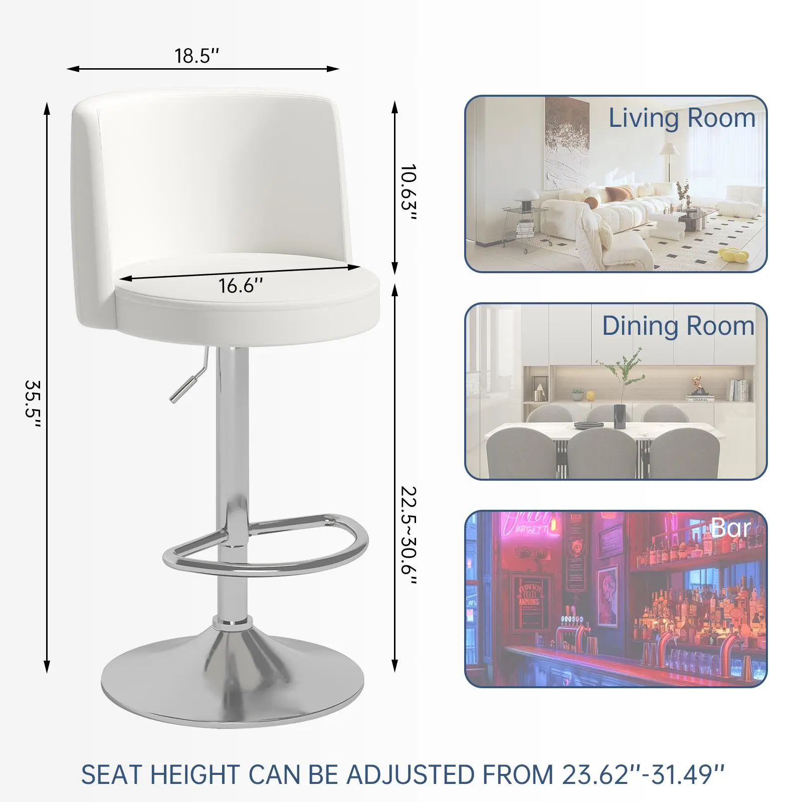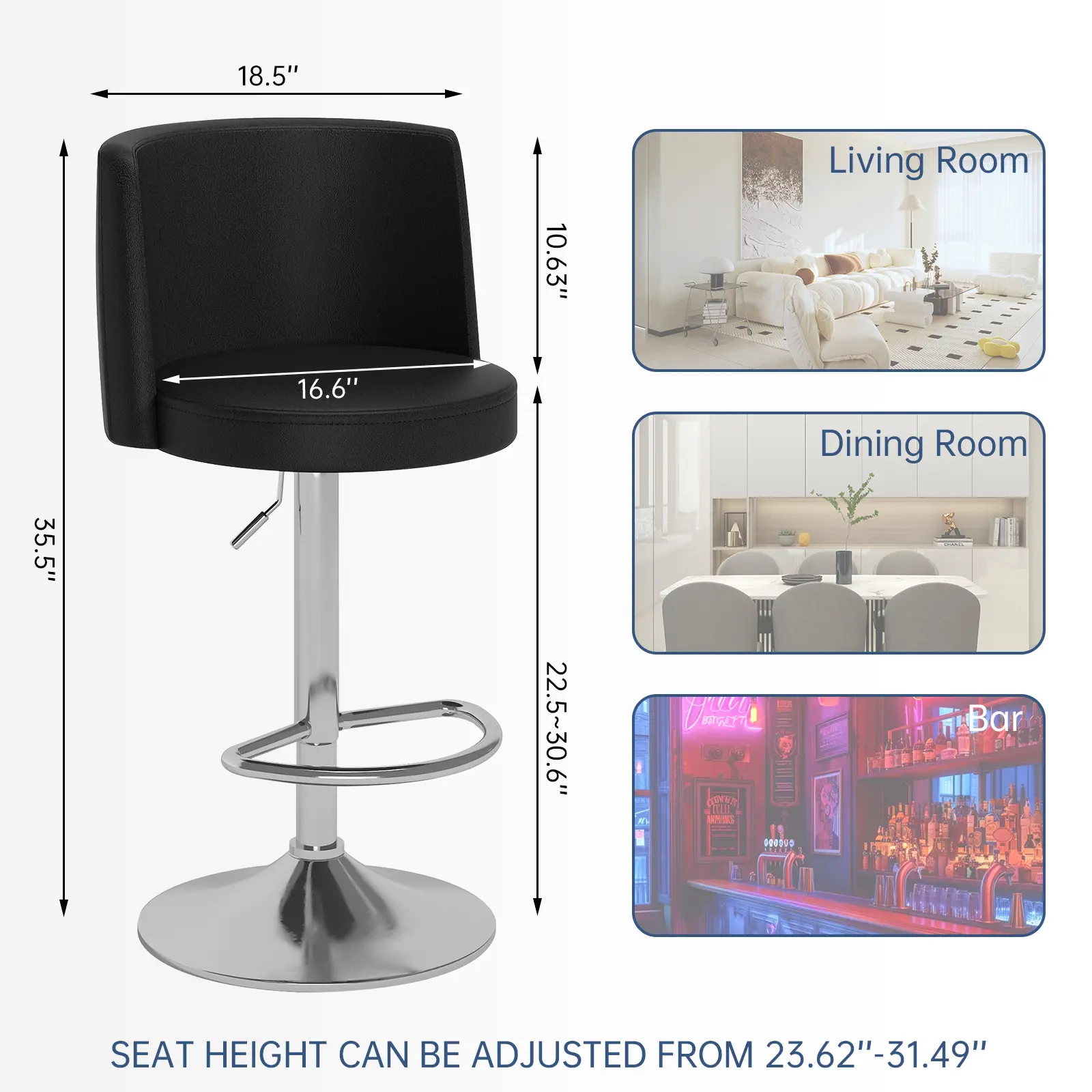 【ADJUSTABLE BAR CHAIRS】- Barstools can adjust from 23.62-31.5” so you can seat guests of every height, and the seat is a generous 17.12” wide , with a weight capacity of up to 350 lbs. The chairs sit on a high-intensity pneumatic rod that rotates 360 degrees for full mobility. So lean back, kick up your feet on the built-in footrest, and enjoy.