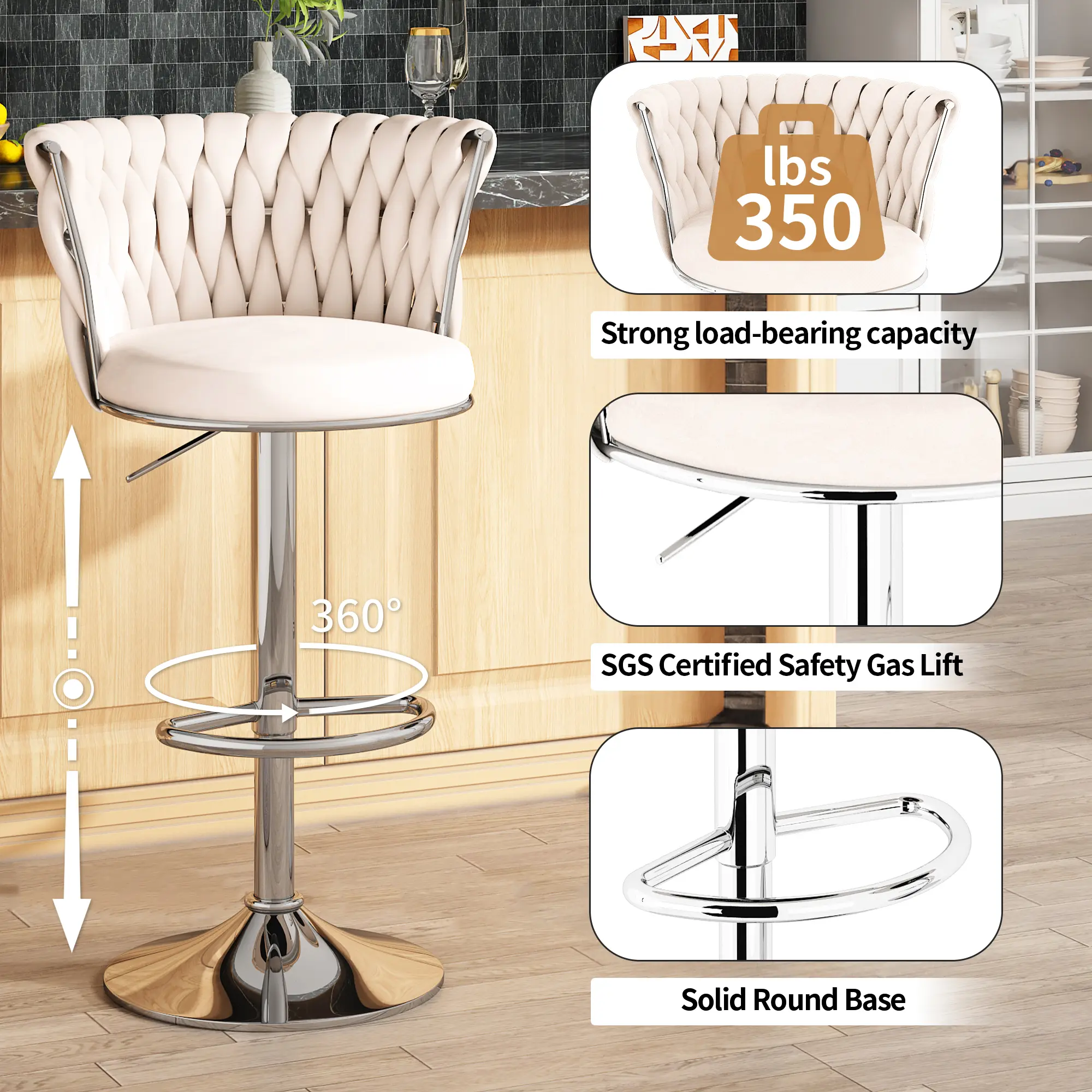 【VELVET SWIVEL BARSTOOLS SET】- Our bar stool seat is made of soft and skin-friendly velvet material and heavy-duty chrome, and filled with high-resilience sponge, thickened and widened seat cushion and backrest, so you can sit for a long time without getting tired! and the Rubber feet prevent the chair from skidding loudly or creating marks on your floor.