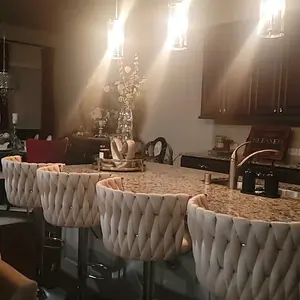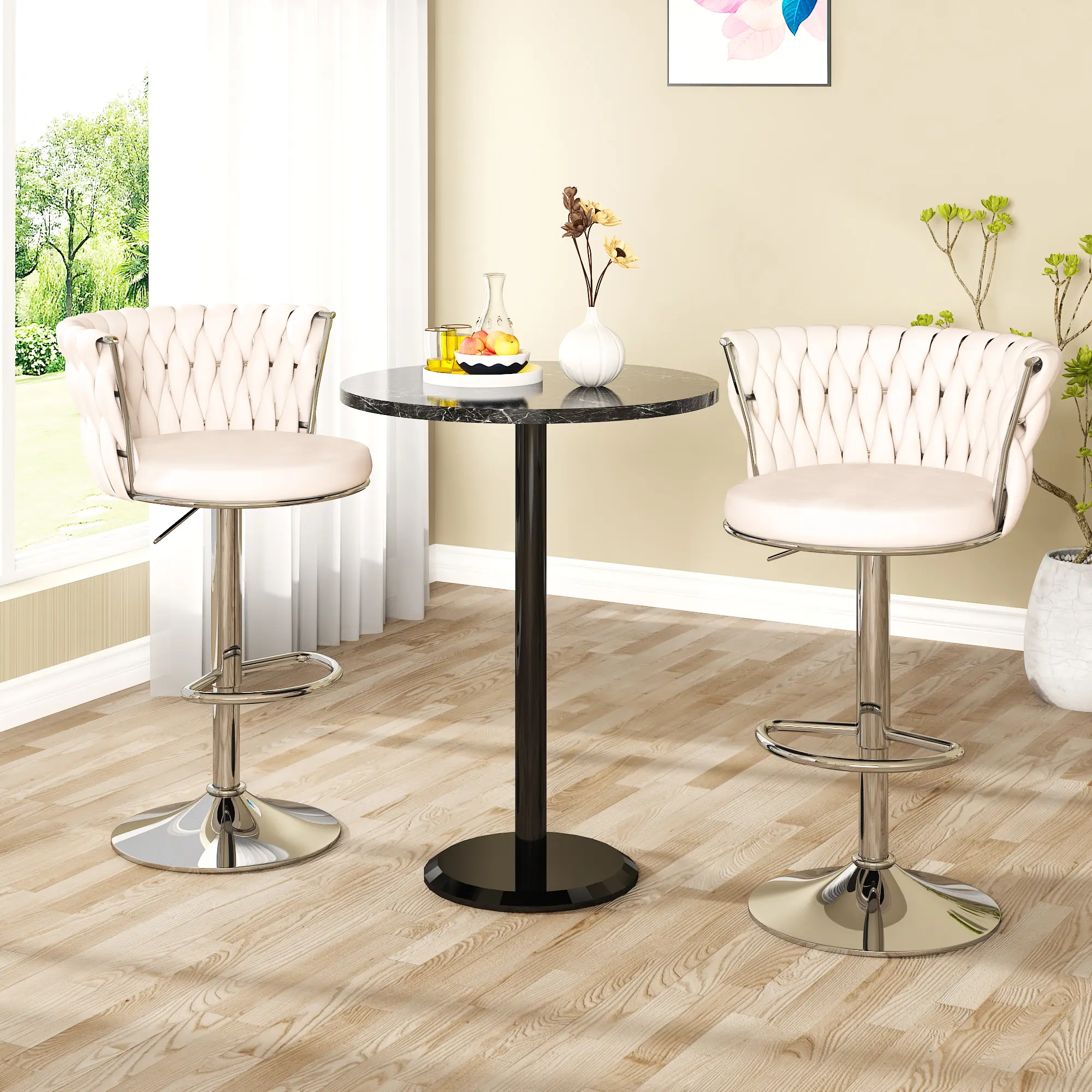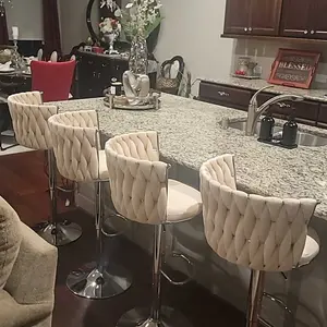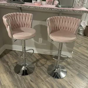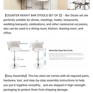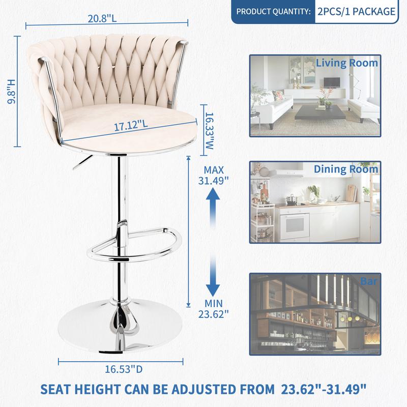 【VELVET SWIVEL BARSTOOLS SET】- Our bar stool seat is made of soft and skin-friendly velvet material and heavy-duty chrome, and filled with high-resilience sponge, thickened and widened seat cushion and backrest, so you can sit for a long time without getting tired! and the Rubber feet prevent the chair from skidding loudly or creating marks on your floor.