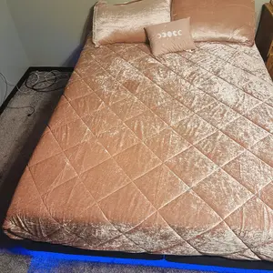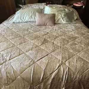🌟 Luxurious crushed velvet with diamond quilting. Comforter/sham: polyester crushed velvet with quilted top and soft brushed microfiber reverse. Pillow: microfiber cover with embroidery and polyester fill. Hypoallergenic polyester filling ensures comfort and safety. Set includes machine-washable comforter, shams, and decorative pillow.