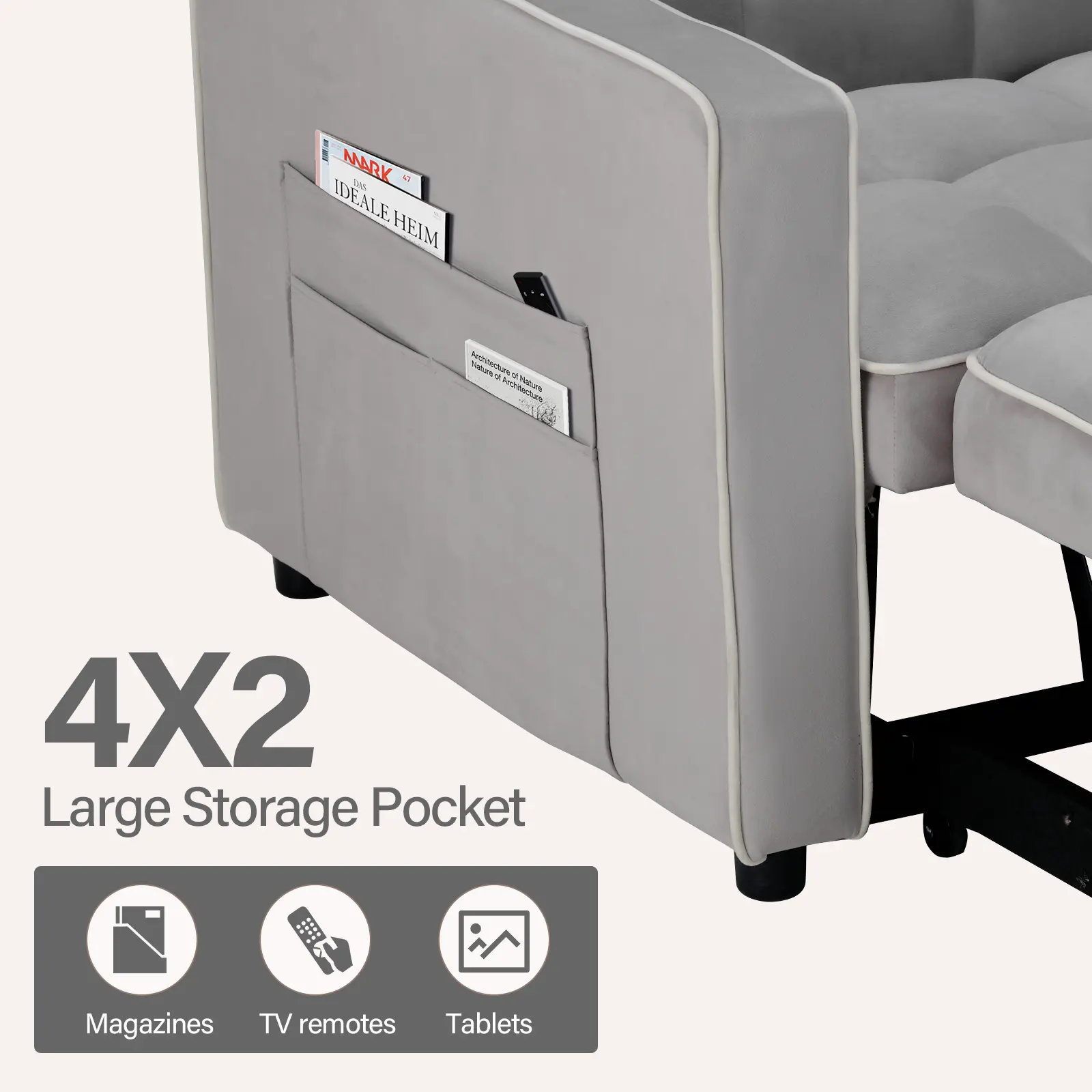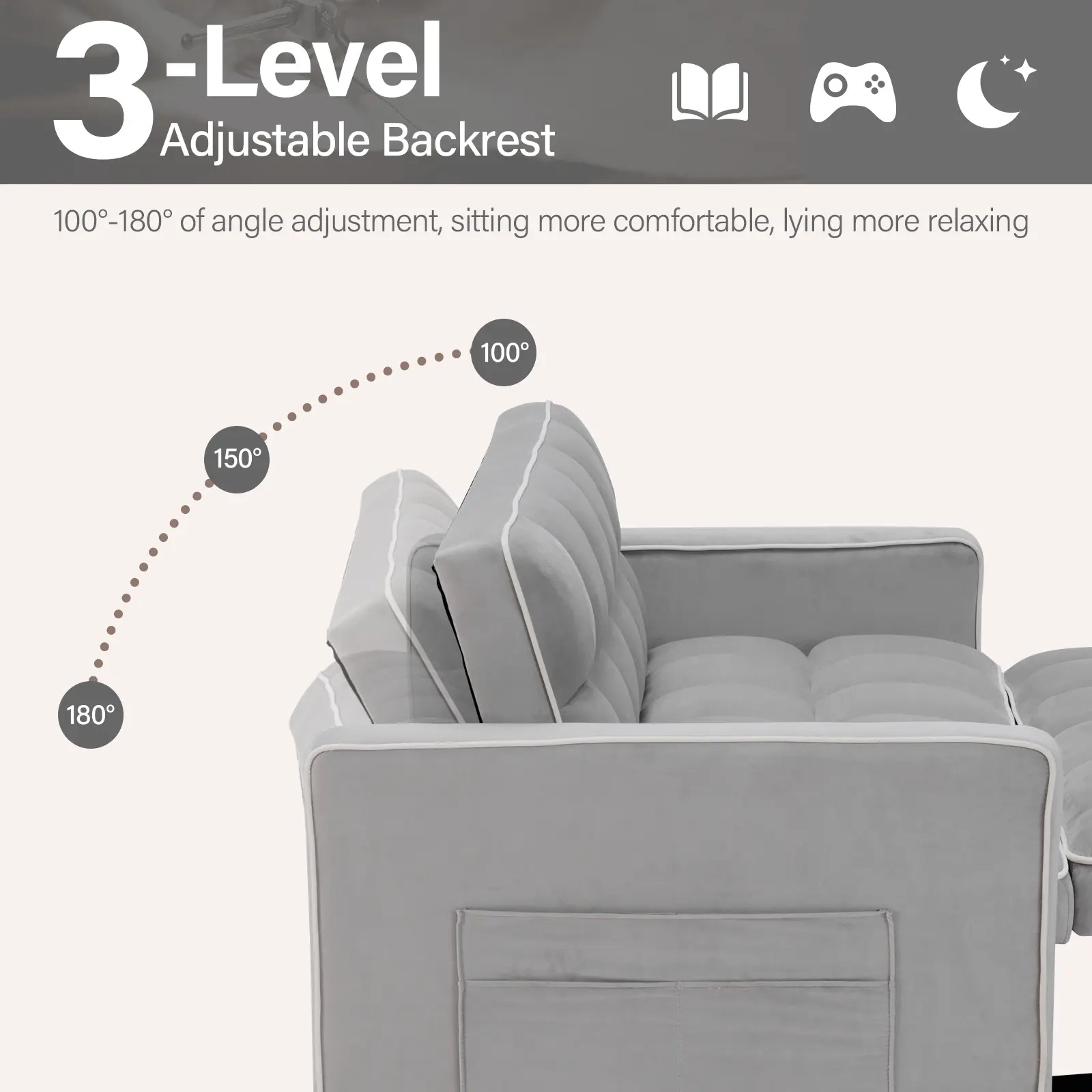 ·Convenient Side Storage Pockets: Equipped with side storage pockets, this sleeper sofa provides a practical solution for keeping essentials like remote controls, magazines, and books within easy reach. These pockets help keep your living area organized and clutter-free.