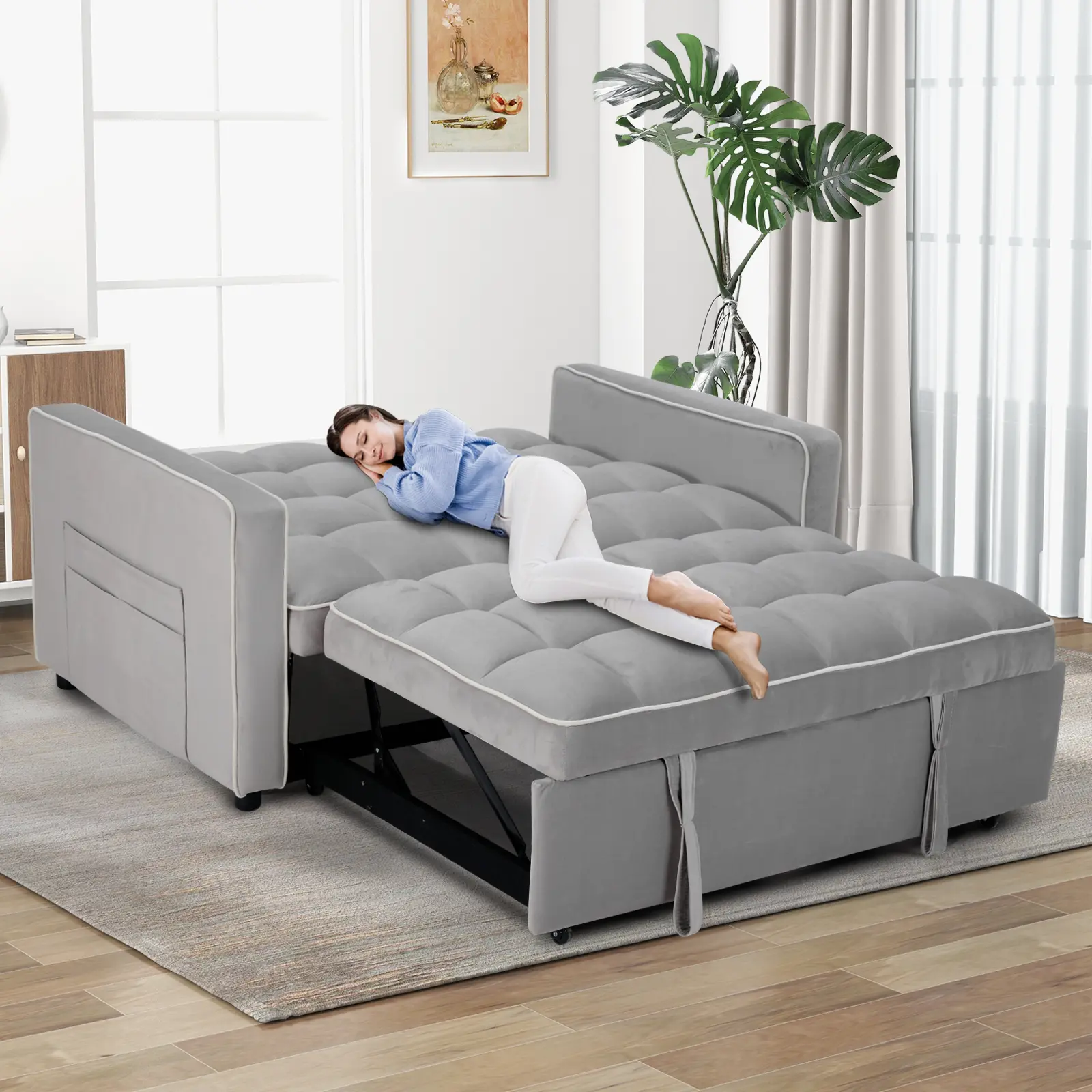 ·Modern Velvet Upholstery: Upholstered in luxurious velvet, this sofa bed adds a touch of elegance and sophistication to any room. The soft and smooth fabric enhances comfort while offering a chic, modern aesthetic.