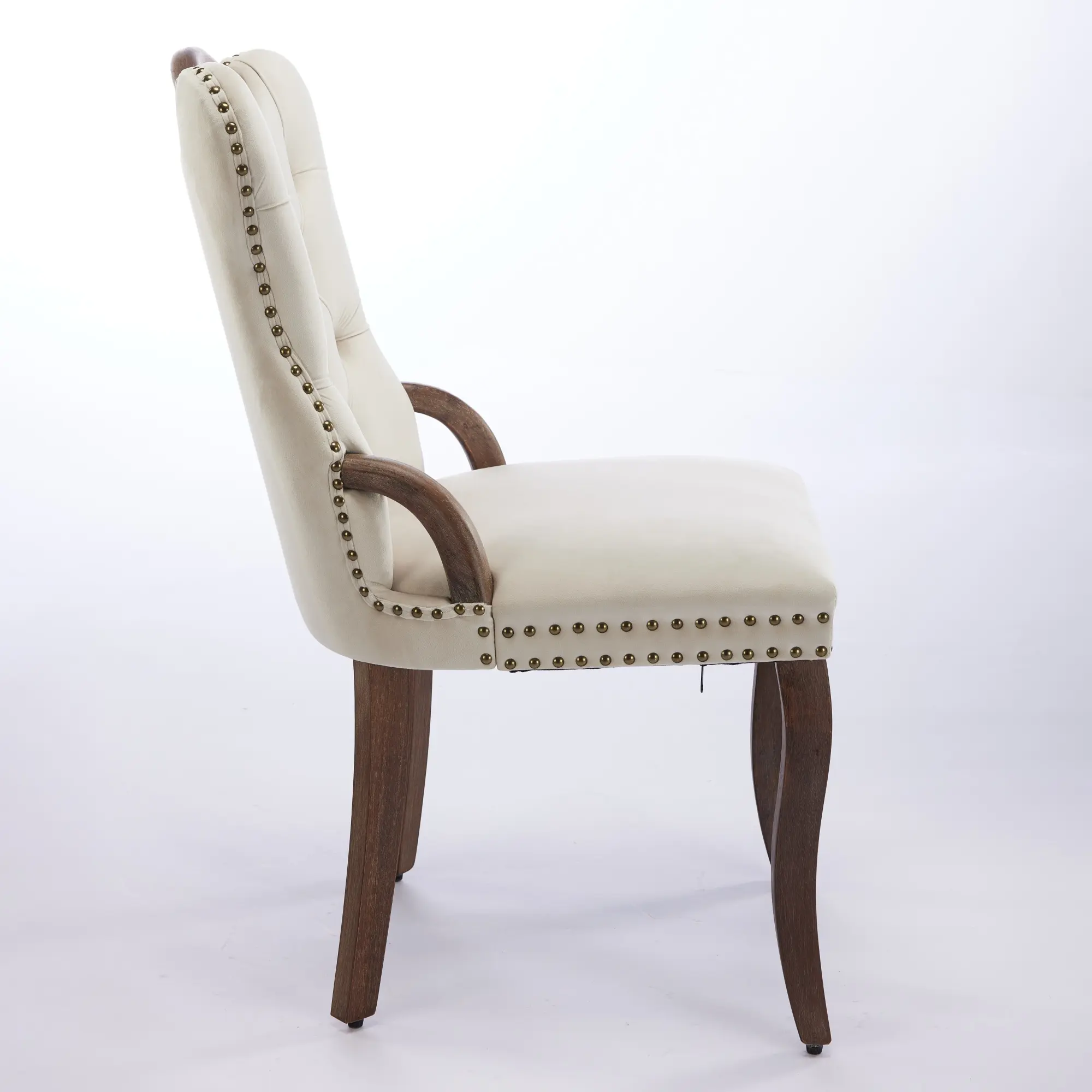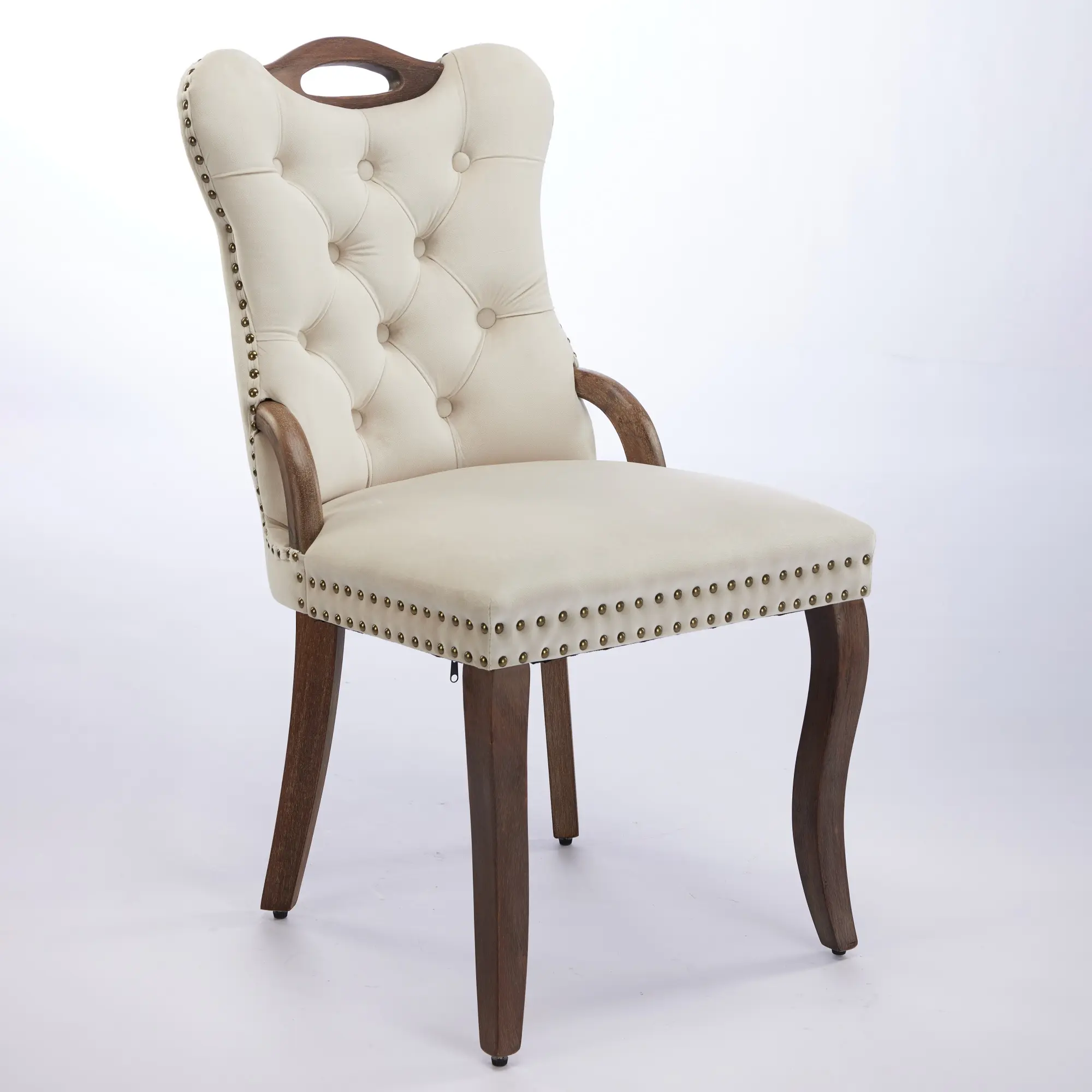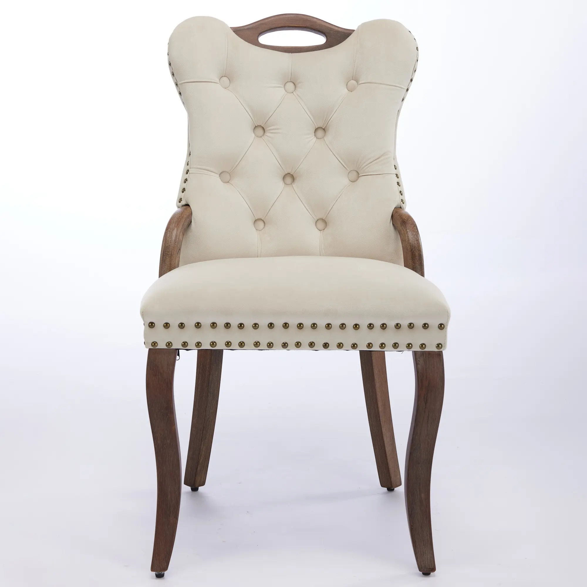 Product Name:Velvet Dining Chair with Handmade Tufted Trim, Solid Wood Handles on Top and Sides, Vintage Copper Nail Decoration, Curved Solid Wood Legs, Elegant Overall Shape,Set of 2,Beige