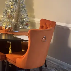 ·Ergonomic Comfort & Superior Cushioning:Featuring an arched spring-supported base and thickened sponge padding, this velvet dining chairs offers superior softness and resilience. The curved, padded backrest cradles your back, providing excellent spinal support and relieving fatigue for a truly comfortable dining experience
