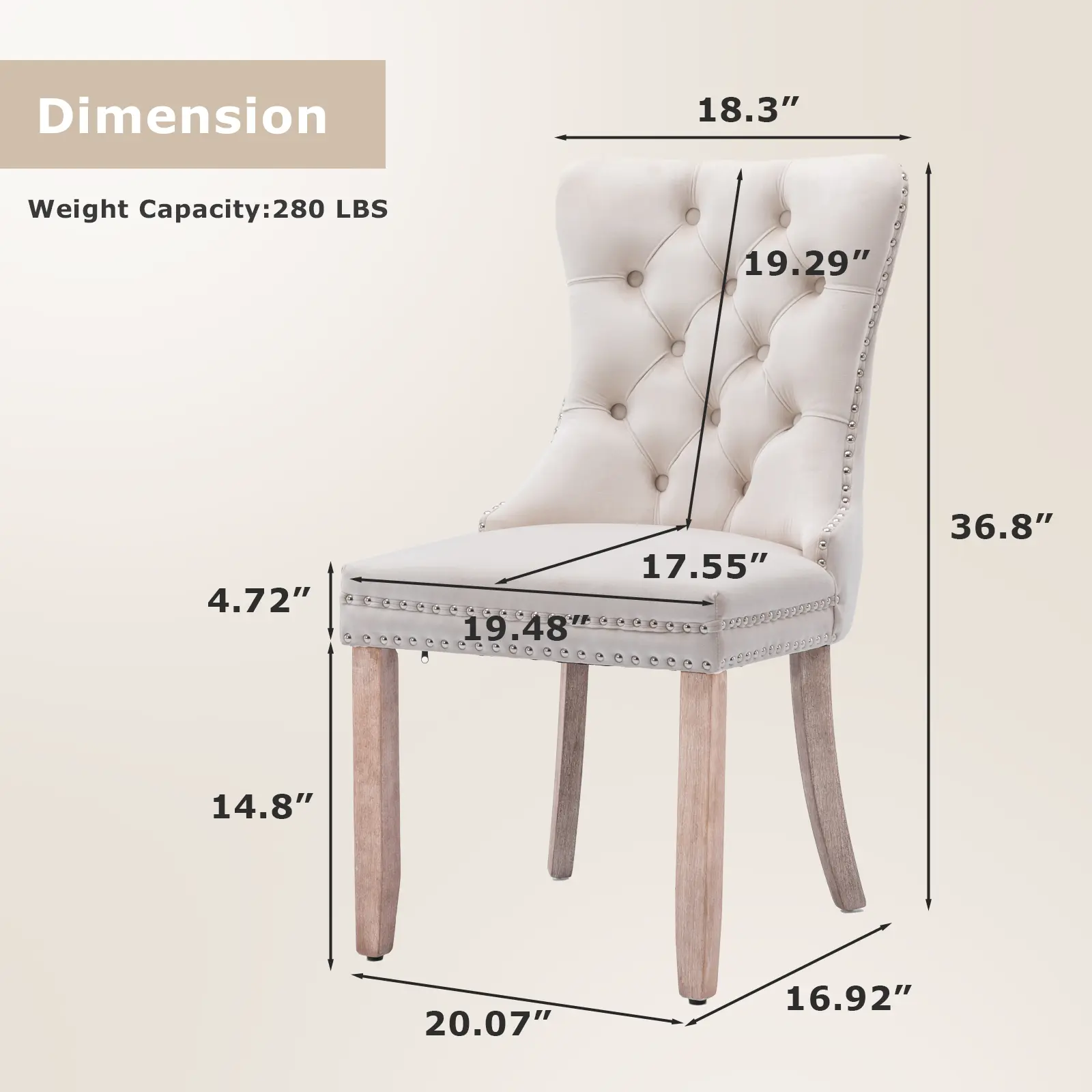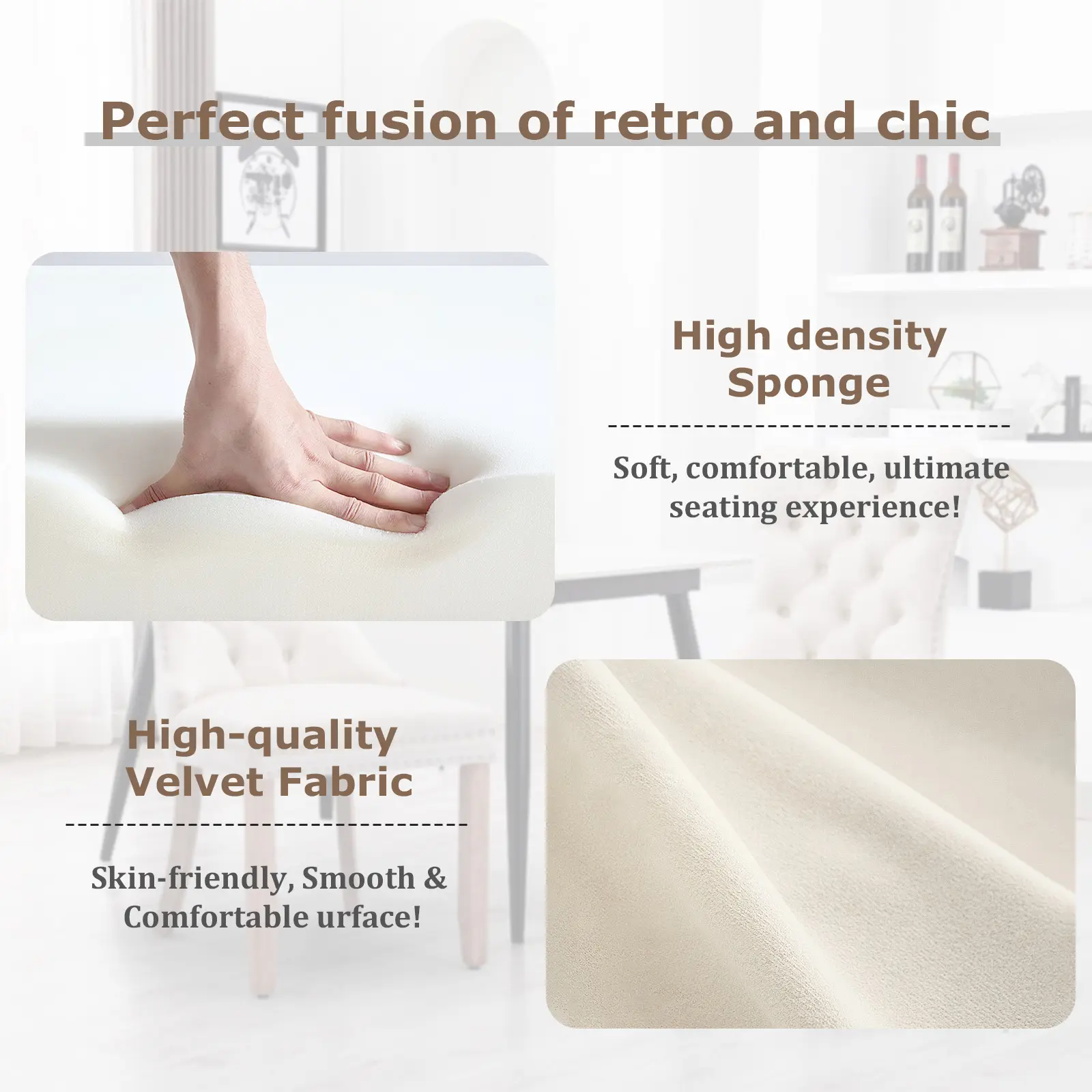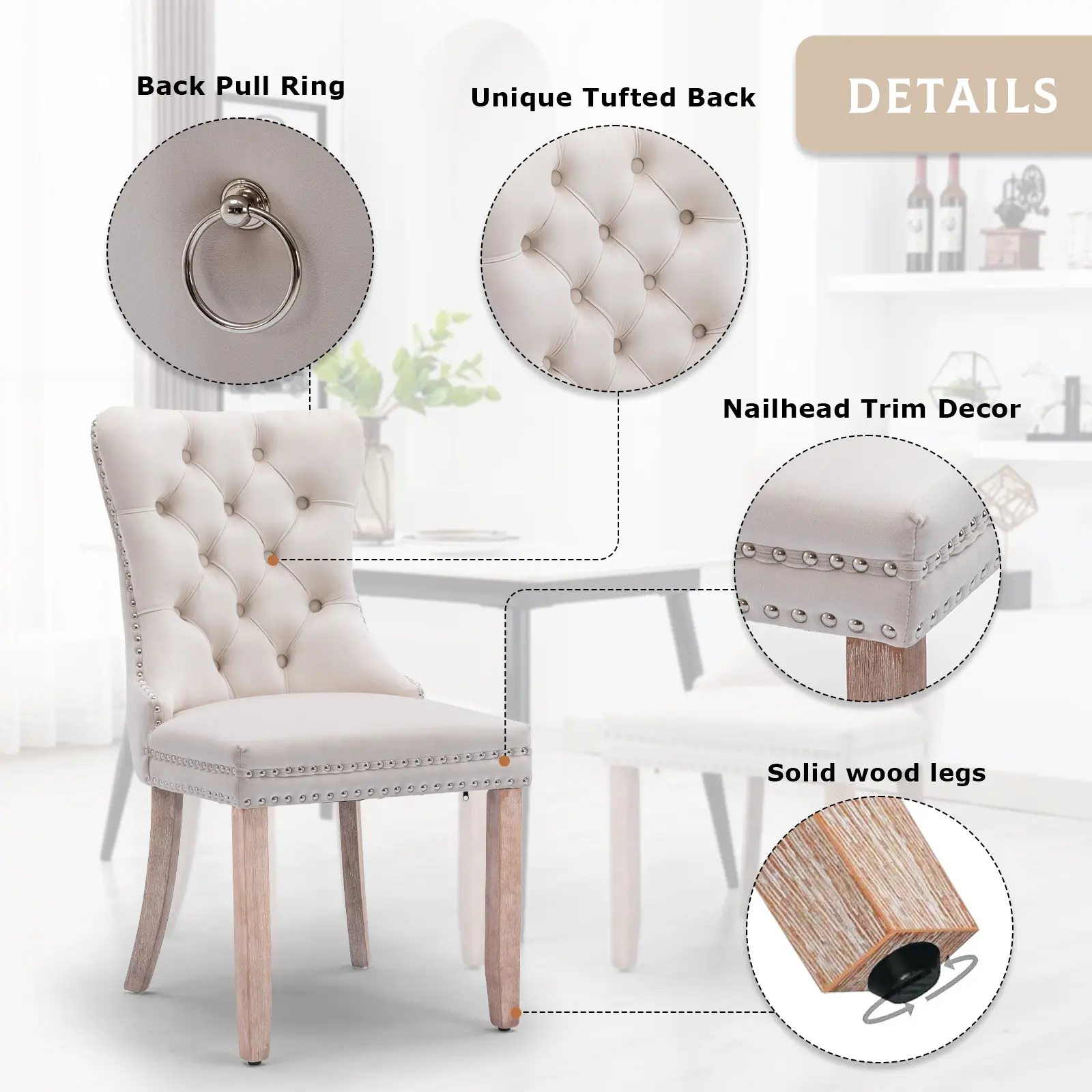 ·Blending vintage charm with modern aesthetics, this dining table chairs features button-tufted detailing with nailhead trim. These exquisite touches create a sophisticated look, adding elegance and style to your dining space effortlessly