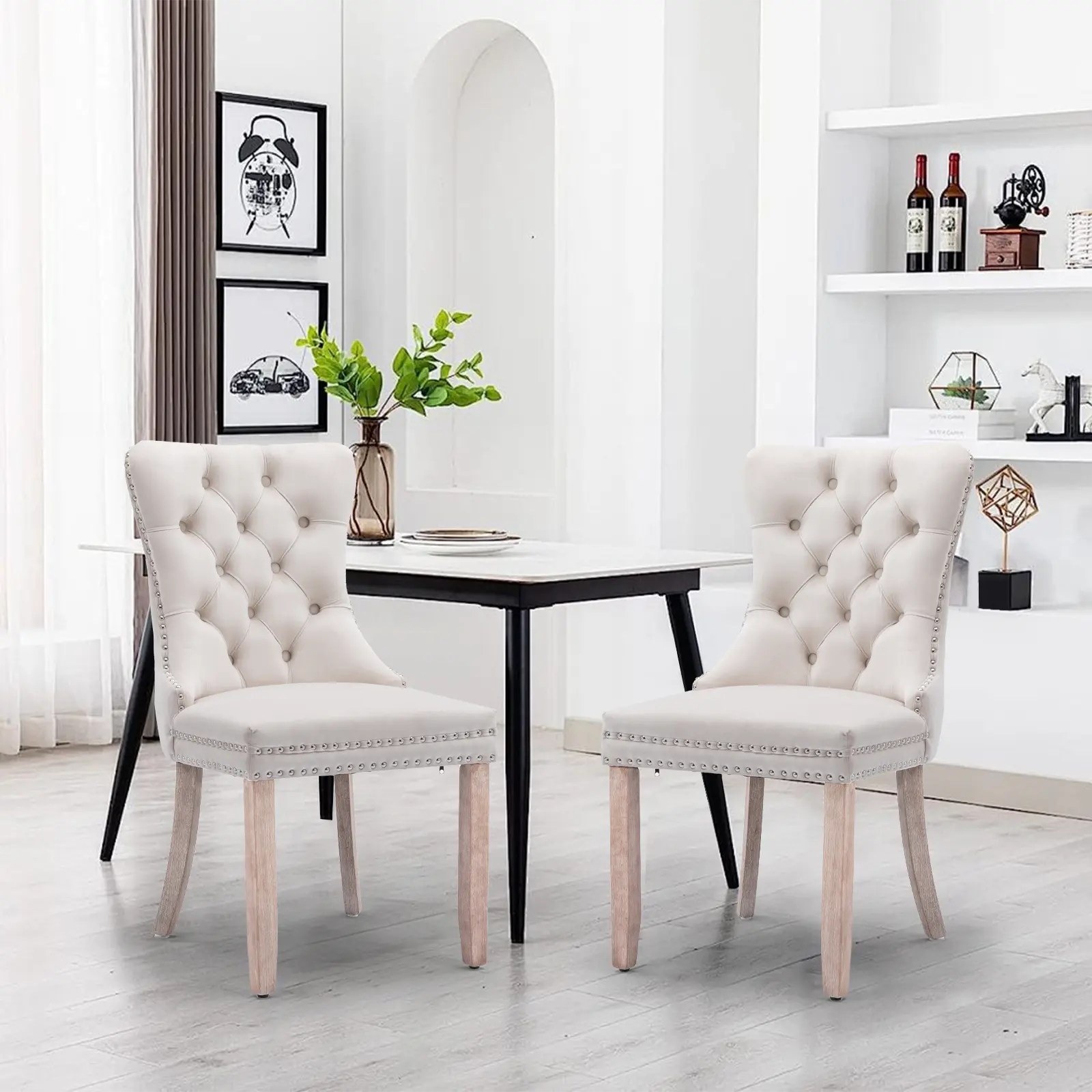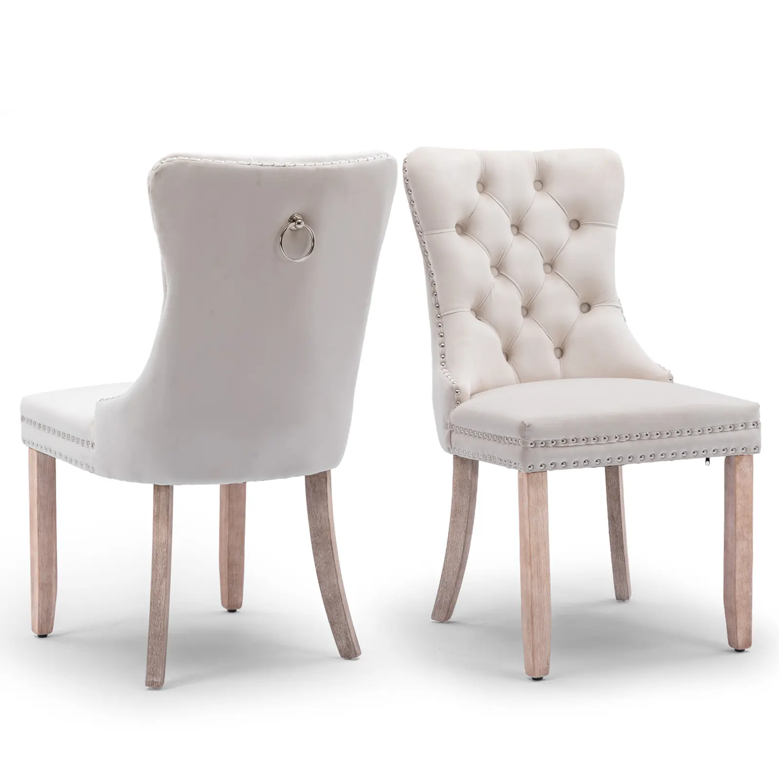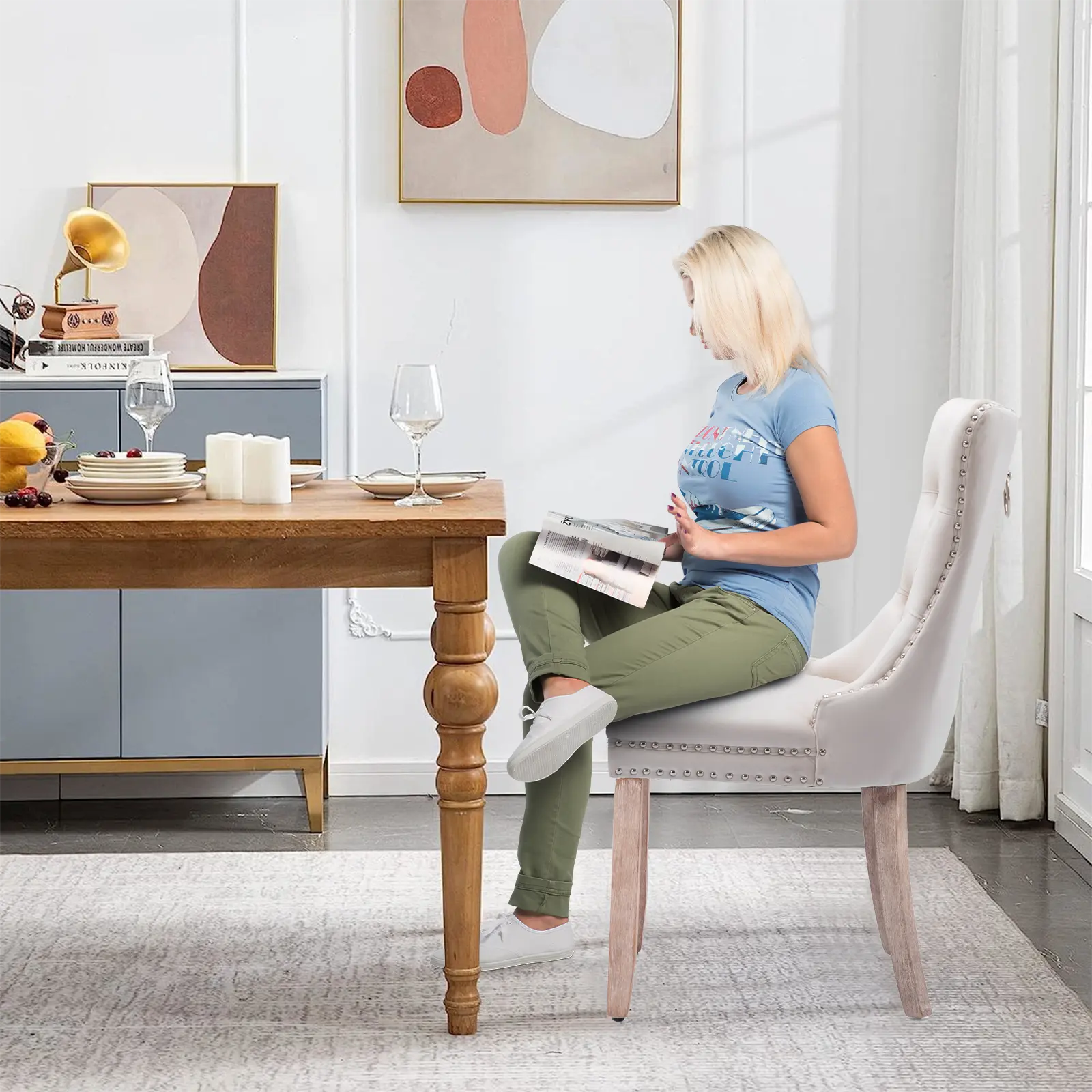 ·Blending vintage charm with modern aesthetics, this dining table chairs features button-tufted detailing with nailhead trim. These exquisite touches create a sophisticated look, adding elegance and style to your dining space effortlessly