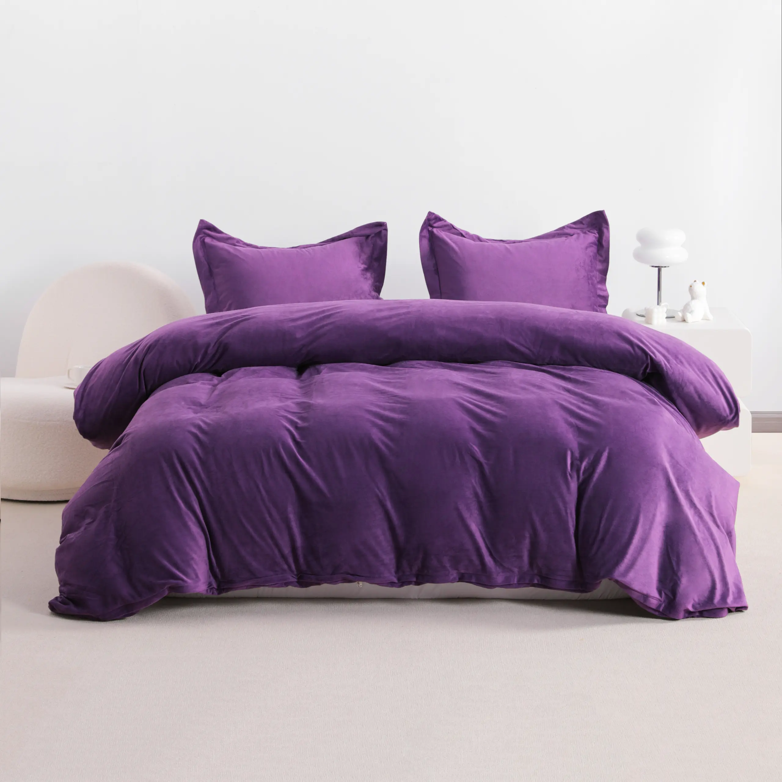 ·The duvet cover set will remain velvety soft and offer cozy warmth all year round. Snuggle down in toasty full duvet cover like a big giant hug from your bed while you sleep in frozen night feeling like a furnace. Featuring a solid simple hue, give your bedroom a simple and luxurious allure for an impressive coordinating foundation.