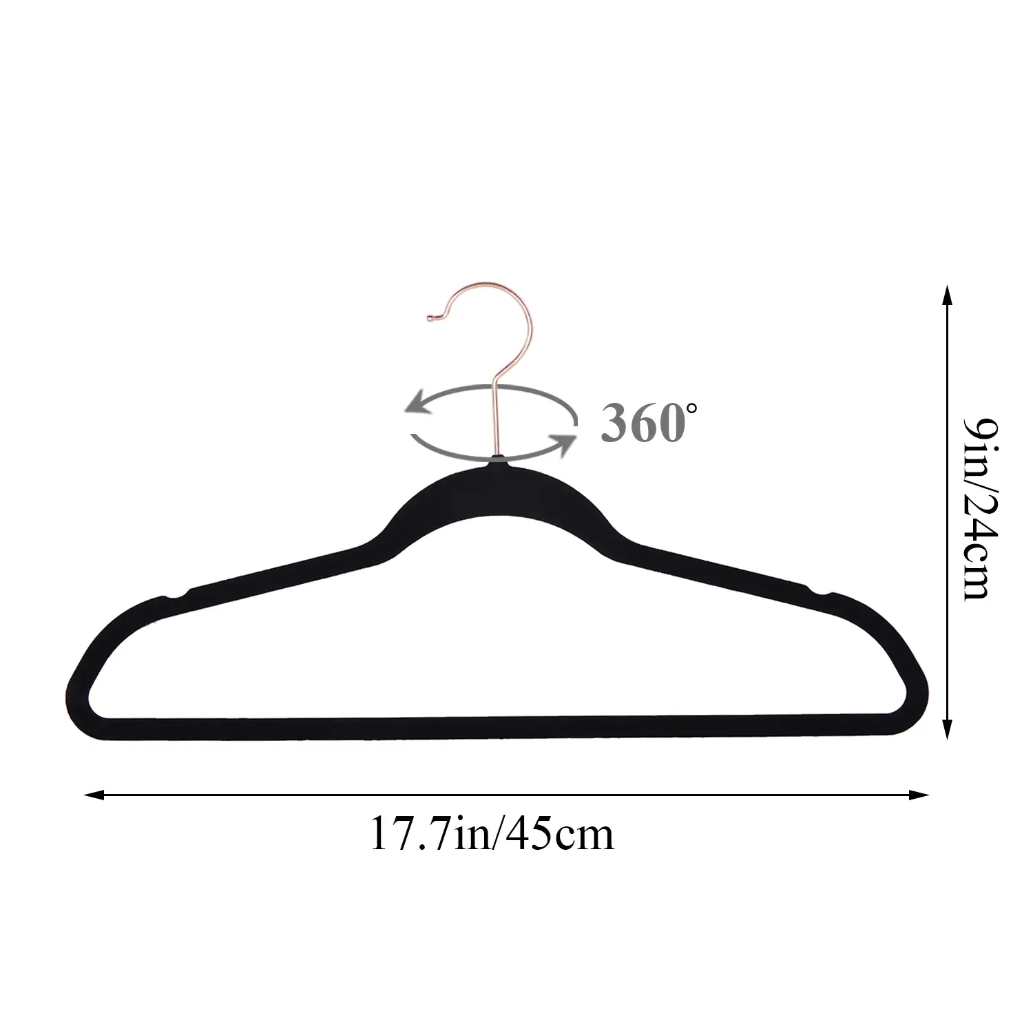 Swivel rose gold hooks: Can be 360-degree rotated, which easy sorting of clothes no matter which direction you hang your clothes, strongly attached to our durable hanger so the hook doesn't detach or snap easily.