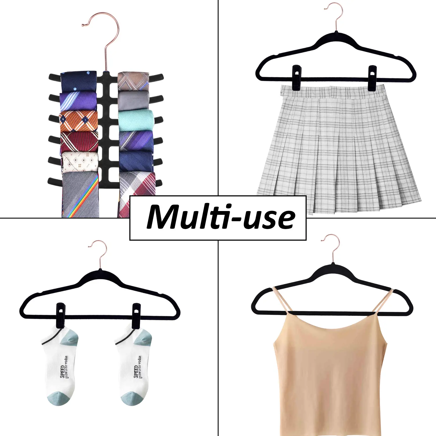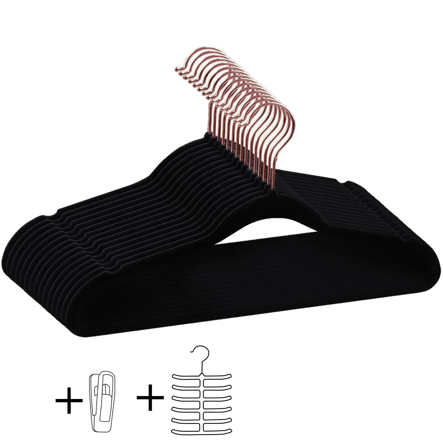 Double maximize closet space: Designed velvet hangers Increase closet space by as much as 50 percent. The slim and sleek design felt hangers work for your closet efficiently, maximizing space and adding class, helping you organize your wardrobe in the most space-efficient manner.