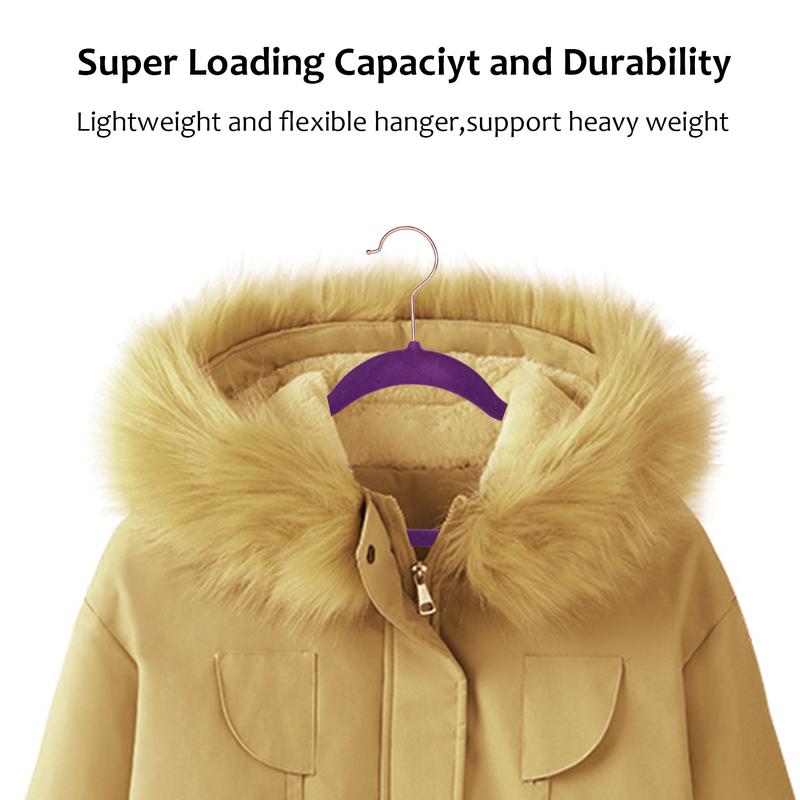 Super strong: Velvet hangers with 2023 Newly improved quality made of premium grade plastic. Rest assured that it will steadily hold even the heaviest clothes in your closet, and can hold large capacity from 5kg to 8kg (11lbs to 18lbs). It is stronger and much lighter than most clothes hangers but sturdy to hold heavy coats without getting bent.