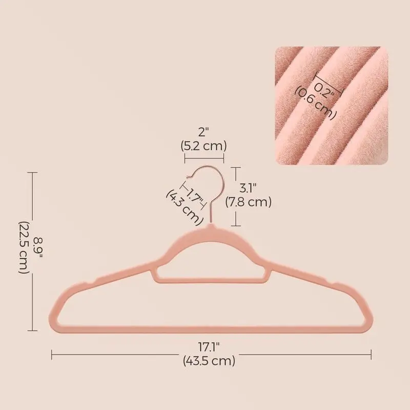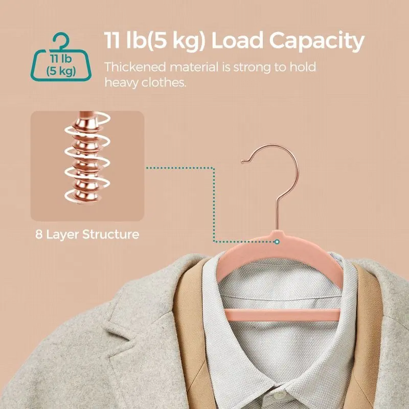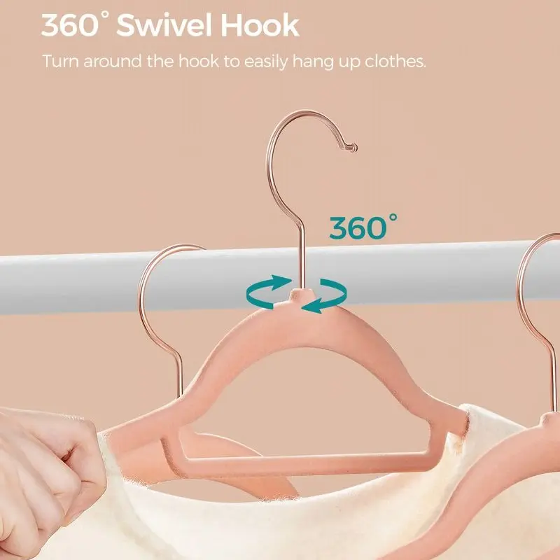 5. SONGMICS Velvet Hangers, Set of 50 Clothes Hanger with Rose Gold Swivel Hook, Non-Slip, and Space-Saving