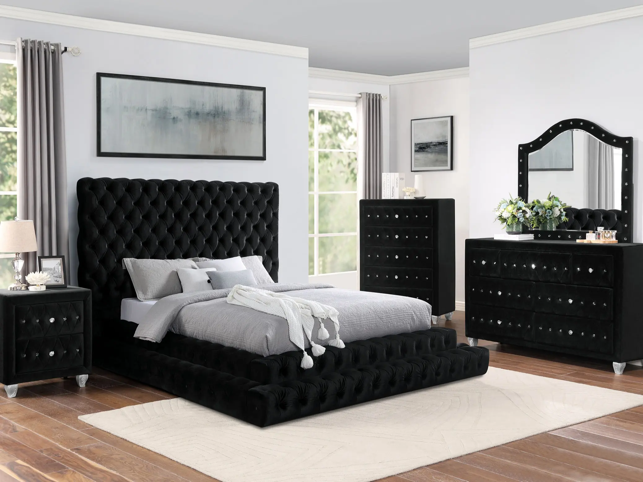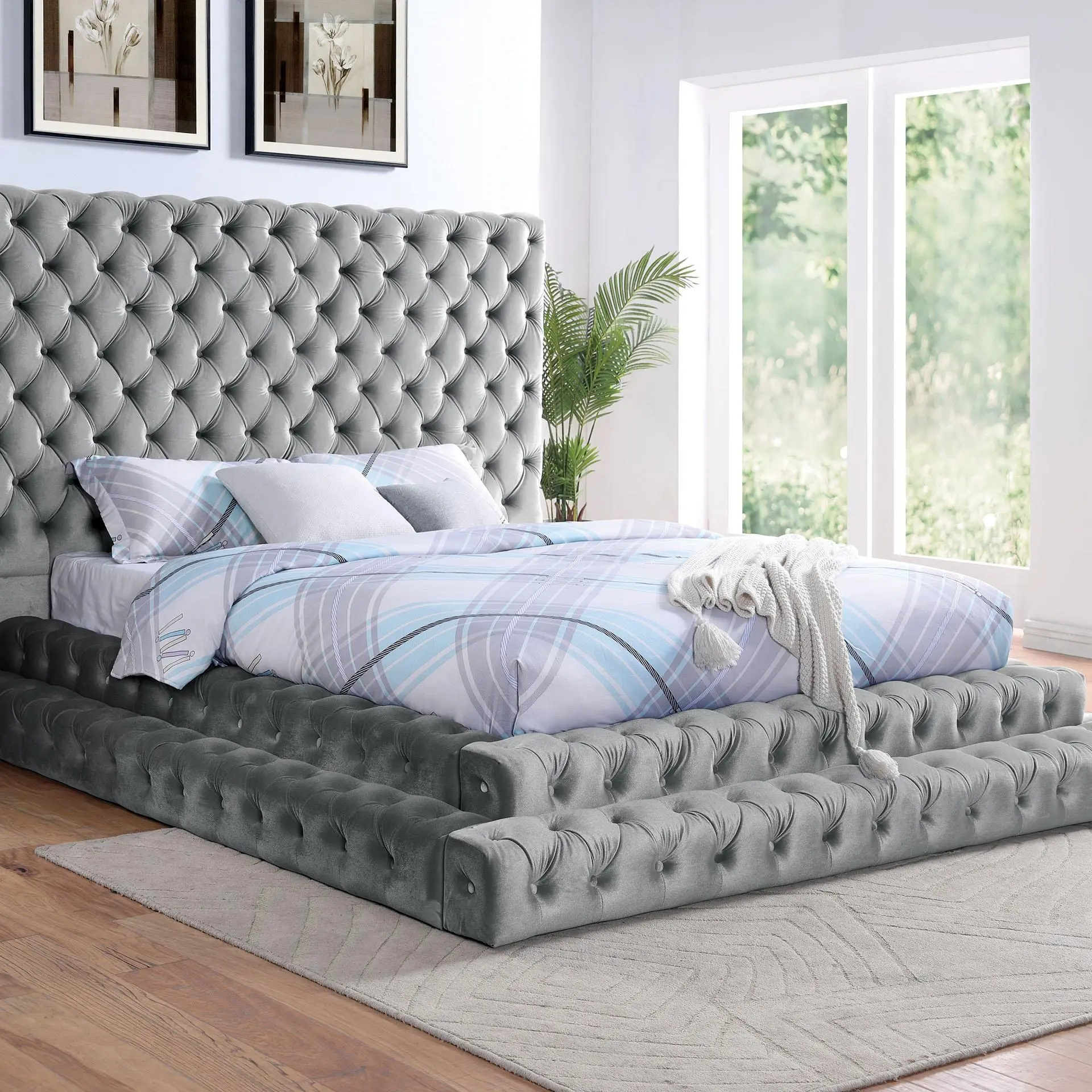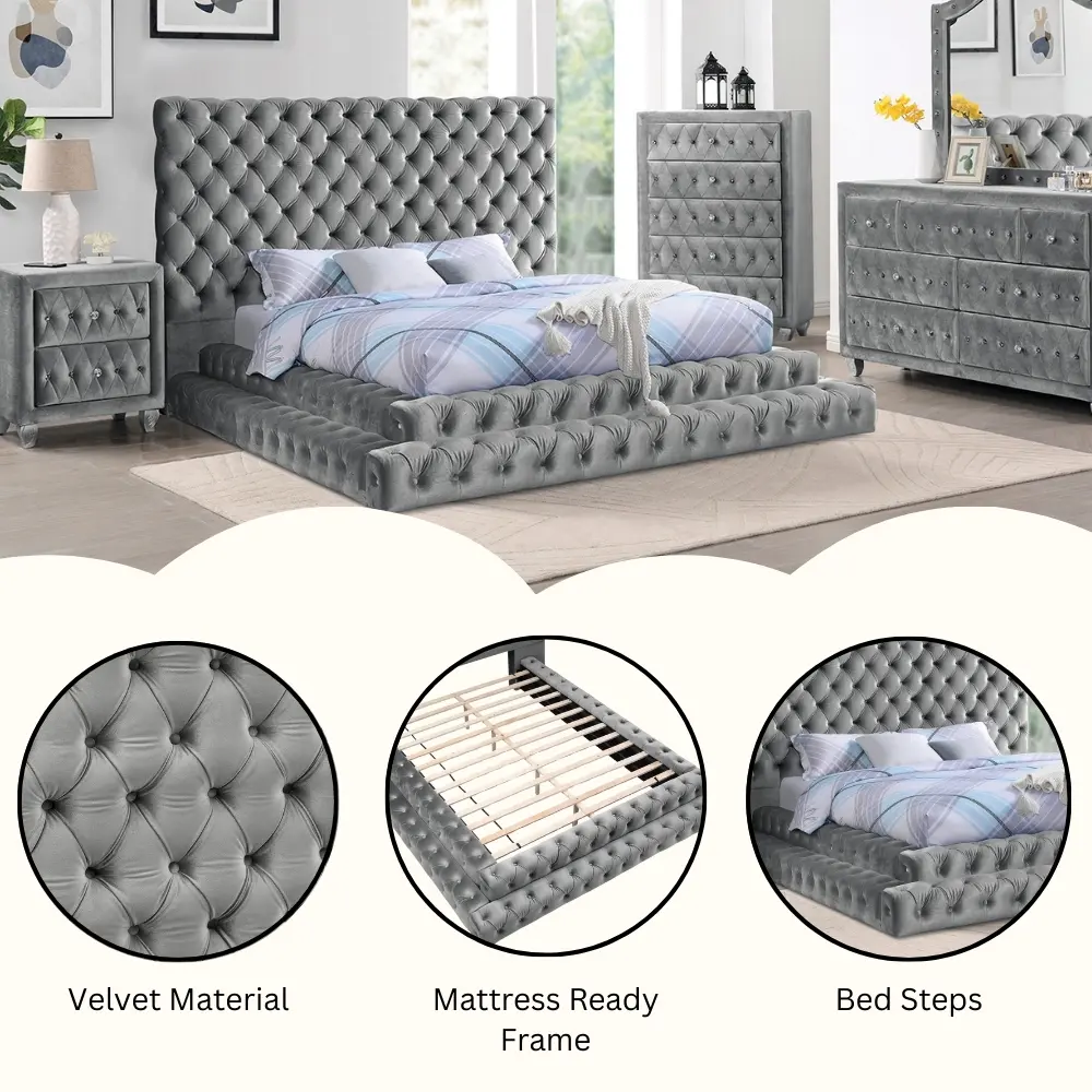 ·Oversized Tufted Headboard – Makes a bold, glamorous statement