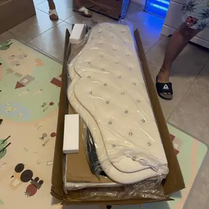 The headboard LED light strip adopts a unique curved design. The headboard of this bed frame is padded with high-resilience foam and upholstered in luxury velvet fabric for exceptional comfort.The headboard has two adjustable heights. Recommended mattress height is 8-12 inches.
