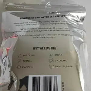 A luxuriously soft makeup Velour Puff specifically textured to resist patchiness for an even, ultra-smooth finish when applying wet or dry products.