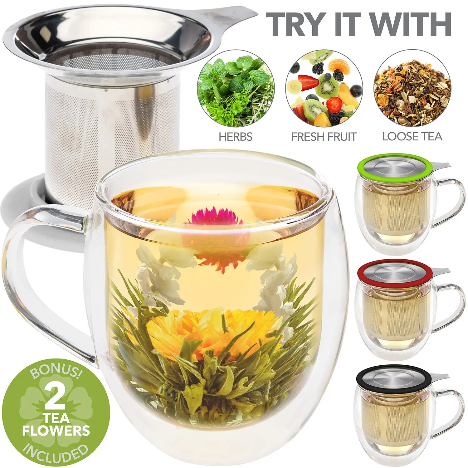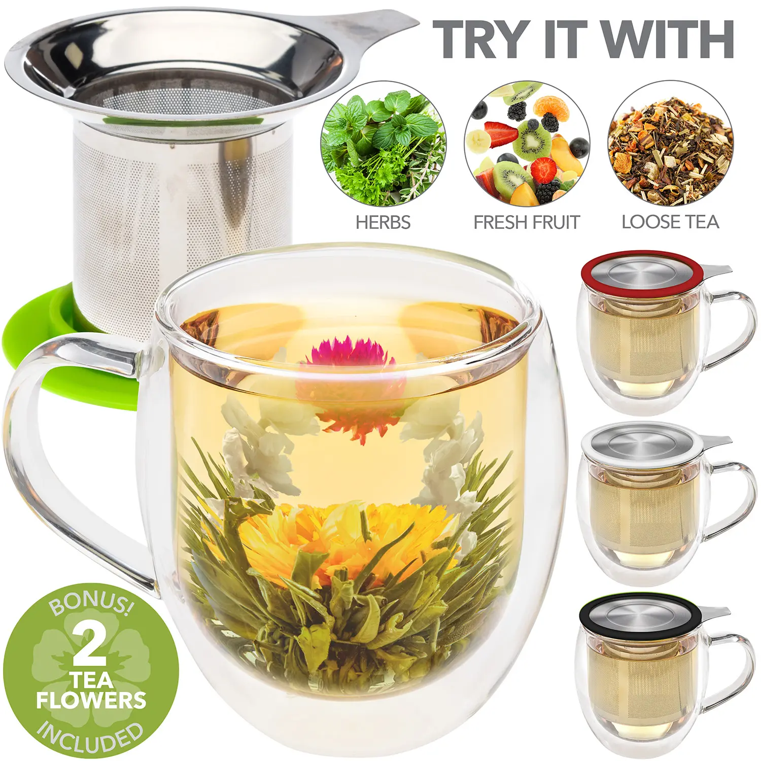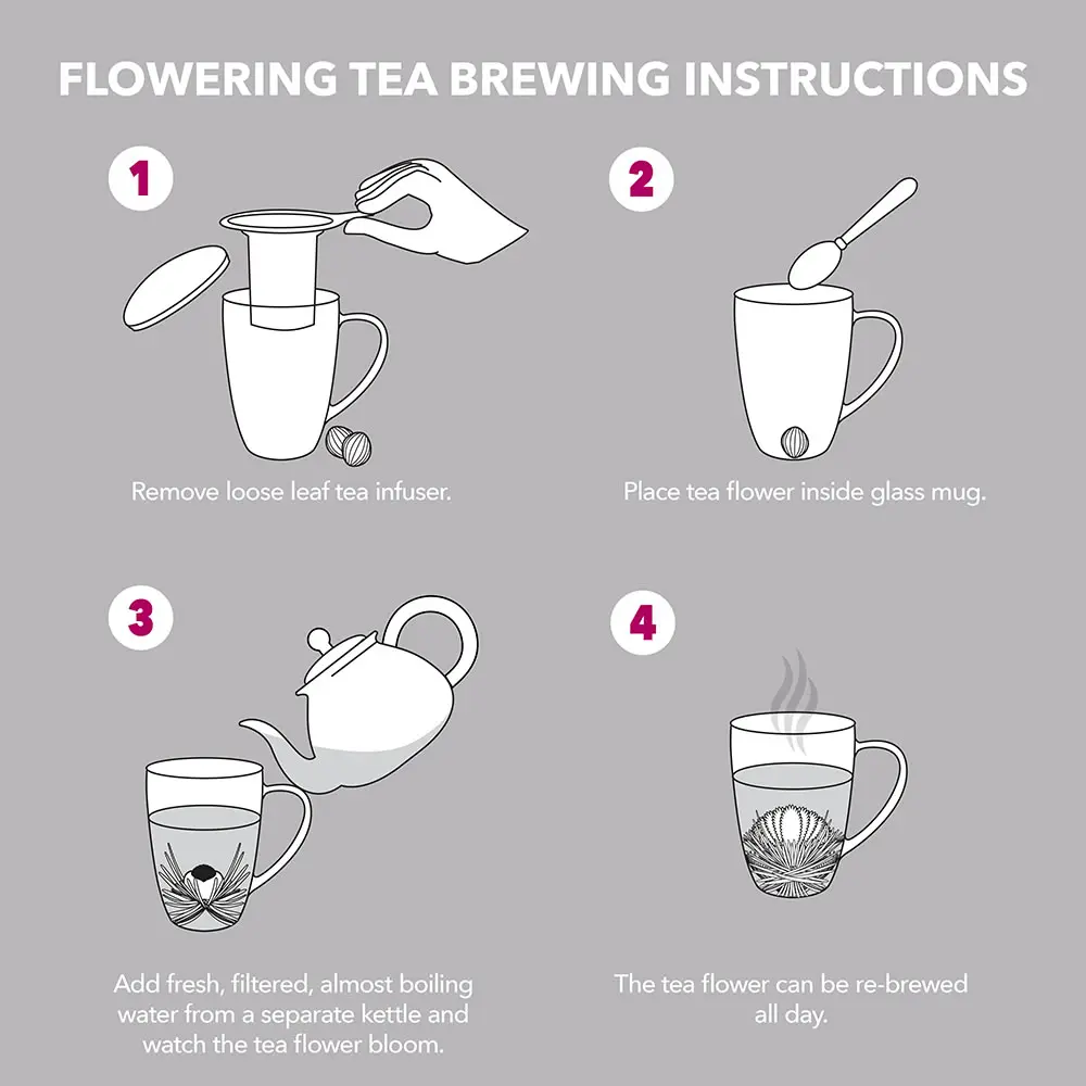 TIMELESS TEA GIFT SET WITH 2 BREATHTAKING DELICIOUS TEA FLOWERS: This glass tea mug is the ideal way to enjoy one of Teabloom’s stunning flowering teas. Made from premium green tea and edible flowers hand tied by tea artisans, these blossoming teas are unforgettable.