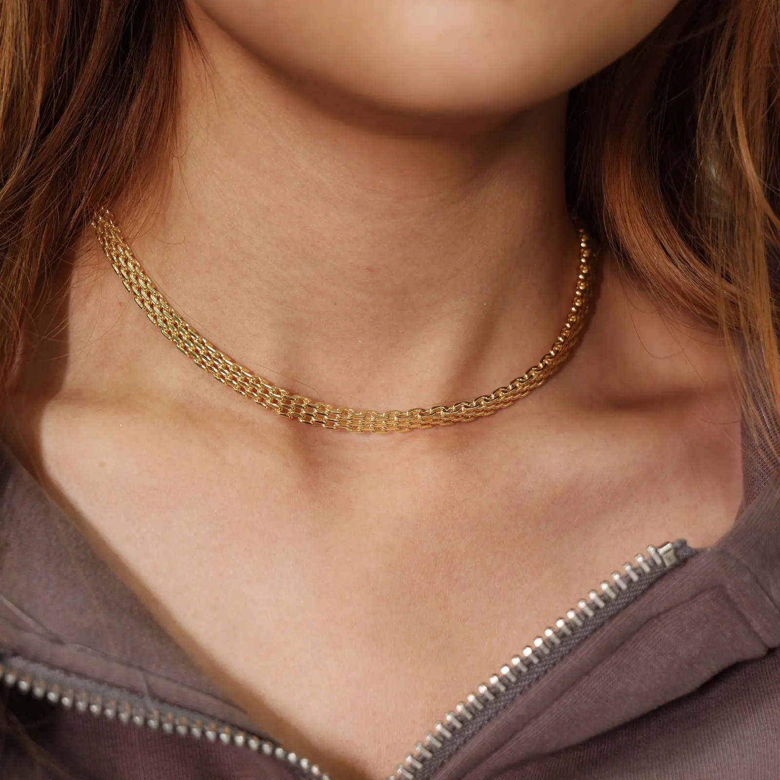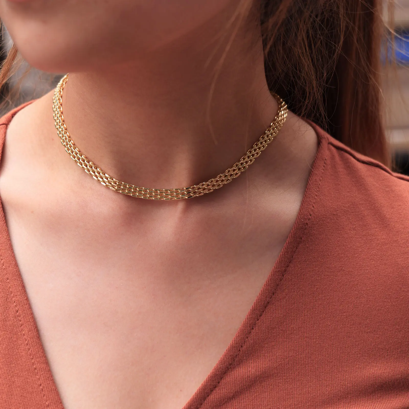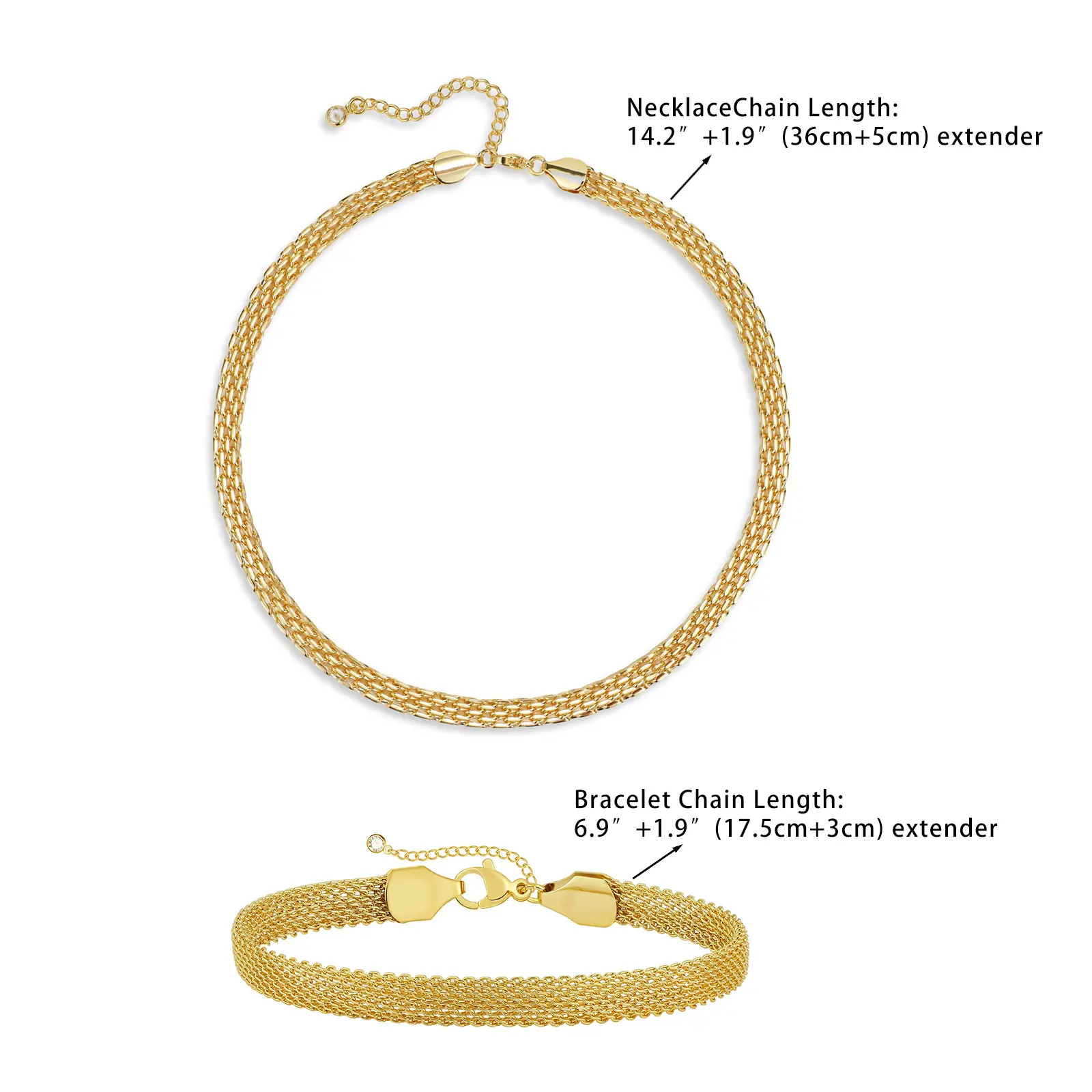 5. VENOCO 2PCS 14k Gold-plated Chunky Mesh Chain Necklace Bracelet for Women men Jewelry Sets Perfect for Daily Wear and Holiday Gifts Ideal Couple Jewelry