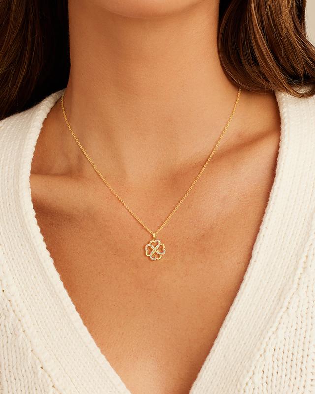 VENOCO Gold Lucky Four Leaf Clover Necklace for Women Dainty 14K Gold Plated Zircon Pendant Chain Jewelry Gift Lucky Valentine's Day Gifts 42+5cm Secure ChainVENOCO Gold Lucky Four Leaf Clover Necklace for Women Dainty 14K Gold Plated Zircon Pendant Chain Jewelry Gift Lucky Valentine's Day Gifts 42+5cm Secure Chain