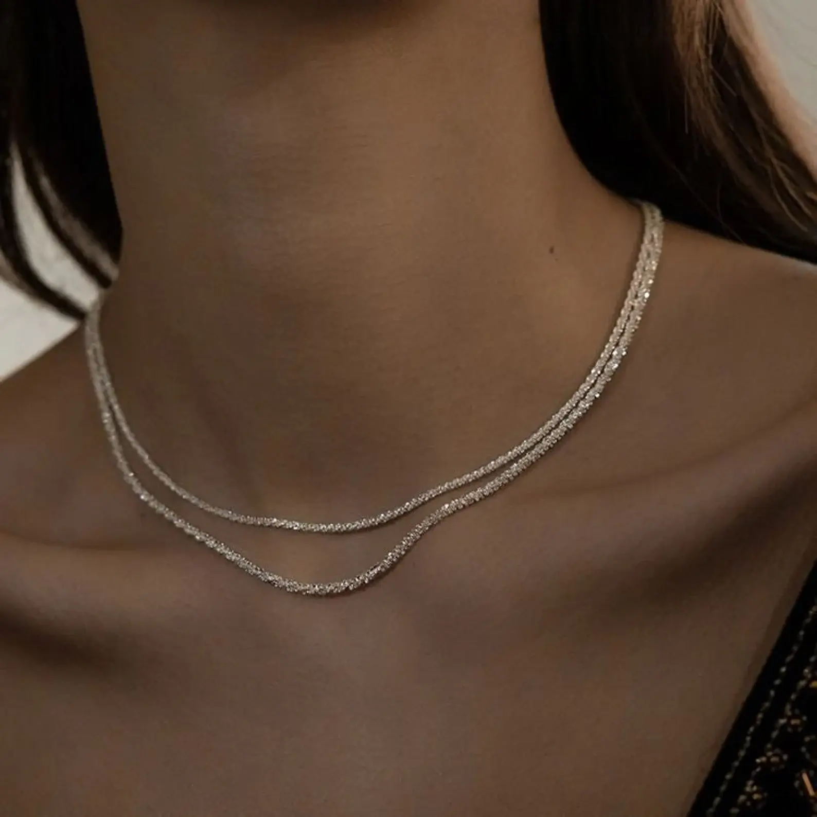 Add some sparkle and shine in your wardrobe with this stunning Glittering Necklace of Stars Double Structure!