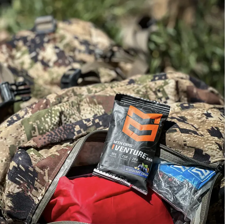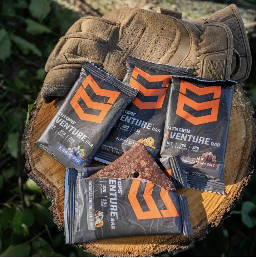 MTN OPS Venture Bars are your everyday, on-the-go energy bar that you can easily throw into your bag or purse as you walk out the door. These peanut-based raw energy bars feature 10 grams of protein, 28 carbs, and 250 calories. These are truly meant for everyone from the outdoor adventurer to the busy office worker
