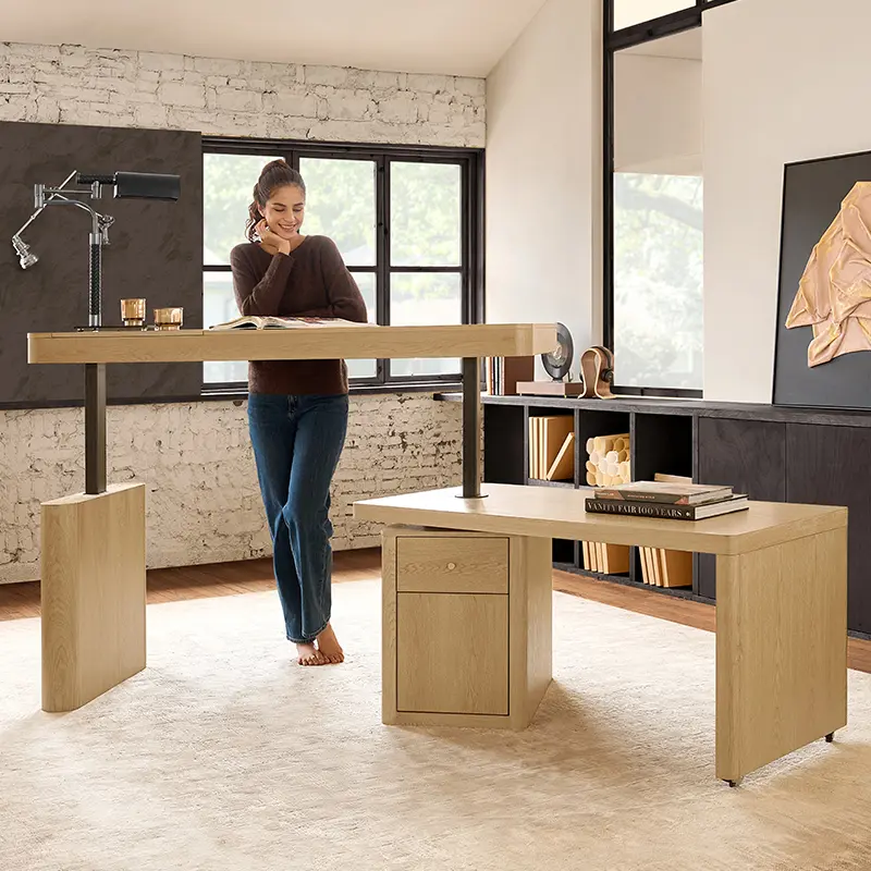 The sleek lines and rich wood finish embody a mid-century modern aesthetic. This desk blends effortlessly with any decor, making it perfect for both collaboration and solo tasks.