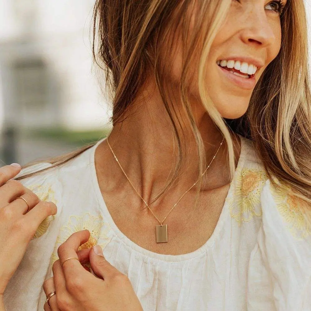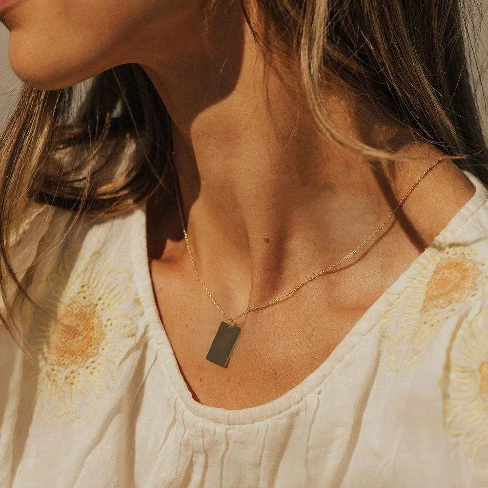 Veronica-Rectangle Shaped Pendant Gold Plated Necklace
