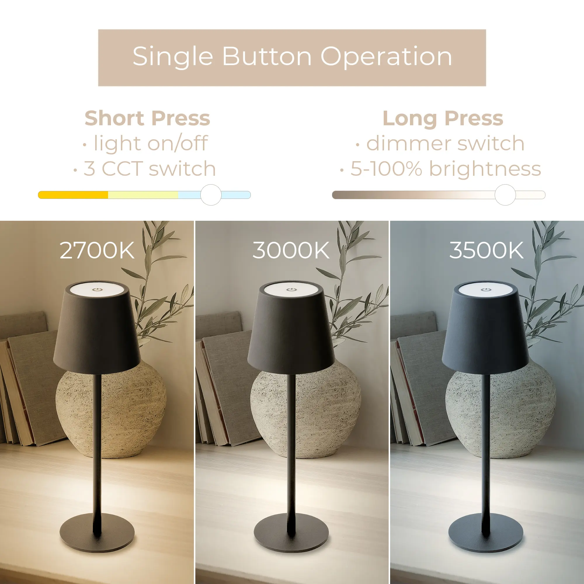 ·Cordless Design: Enjoy the freedom of a cordless table lamp, perfect for any setting.