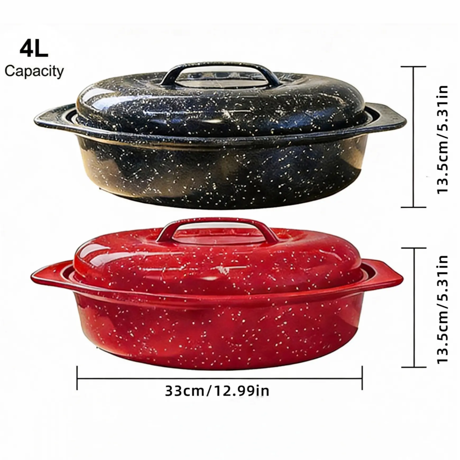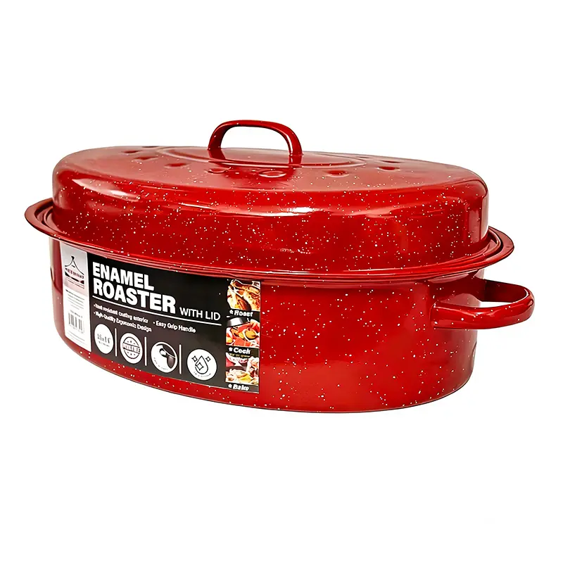 ·Single Piece Design: This product combines a covered baking pan, enamel dish, granite bowl, and turkey pot. Ideal for roasting turkey, bread, beef, and vegetables. 🍗