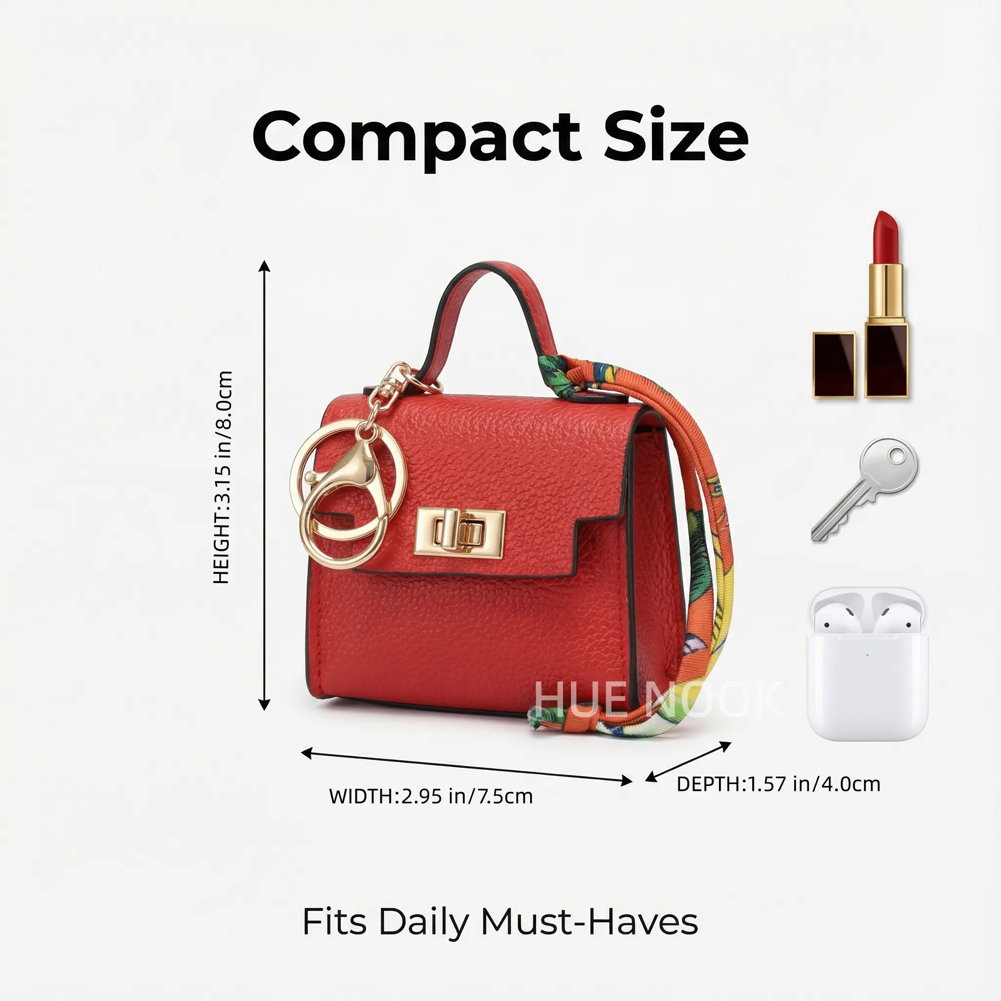 This mini bag, measuring 8.0x7.5x4.0 cm, is perfect for carrying essentials. It fits items like lipstick, credit cards, and keys, keeping everything organized and accessible. Ideal for on-the-go use, this bag ensures your items are always within reach.
