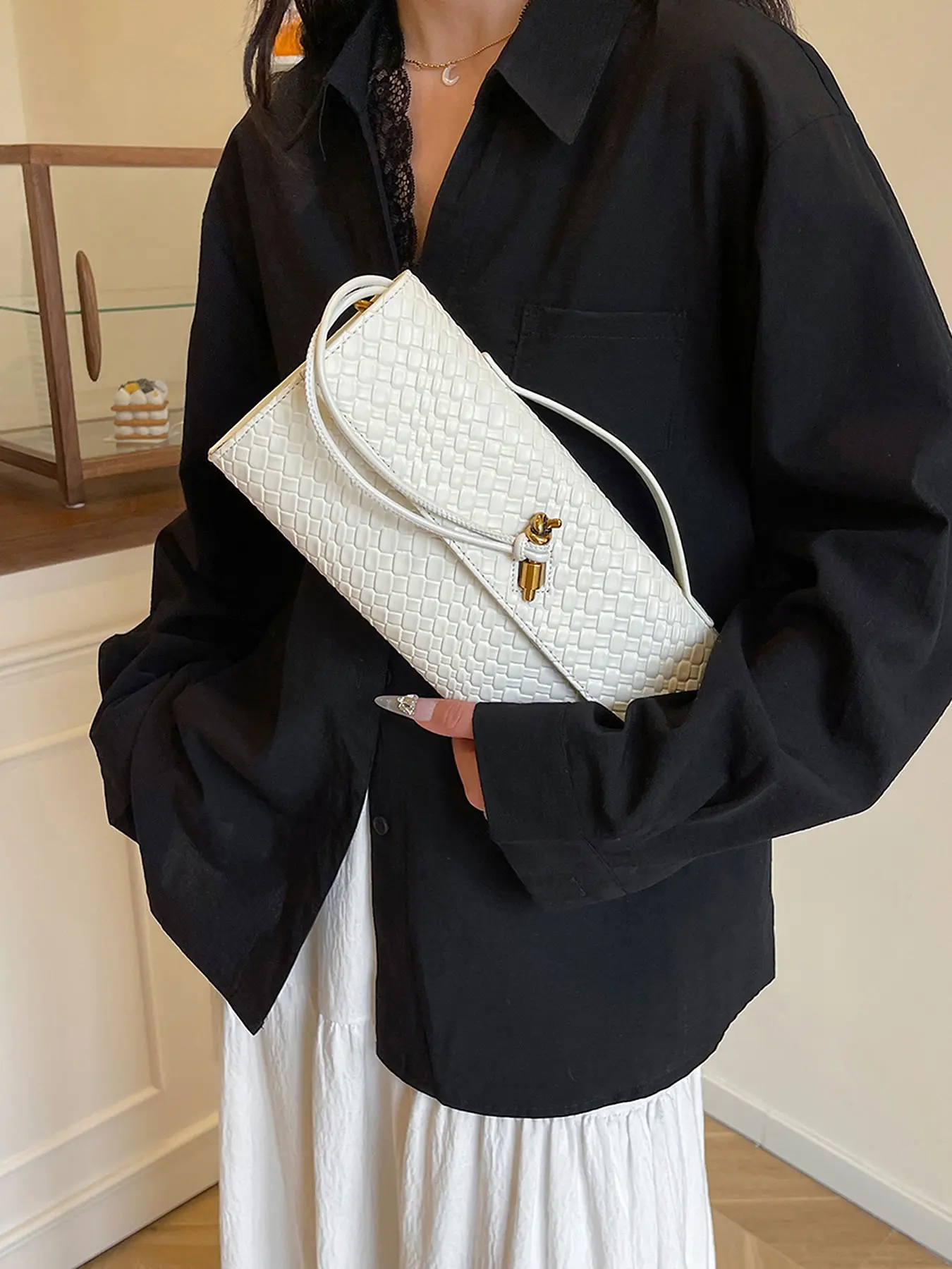 cute bag for the price but it’s not getting 5 stars because it’s not actually woven PU it’s stamped so it does look a little cheap up close