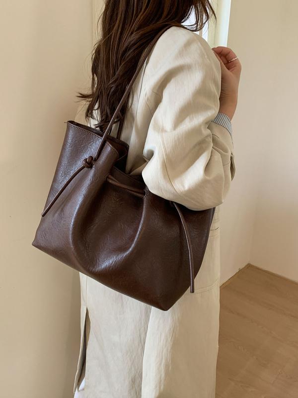 Texture casual and fashionable versatile shoulder bag, niche design retro large capacity underarm bag, generous temperament simple bucket bag, suitable for commuting to work, daily going out for classes, PU Tote Satchel