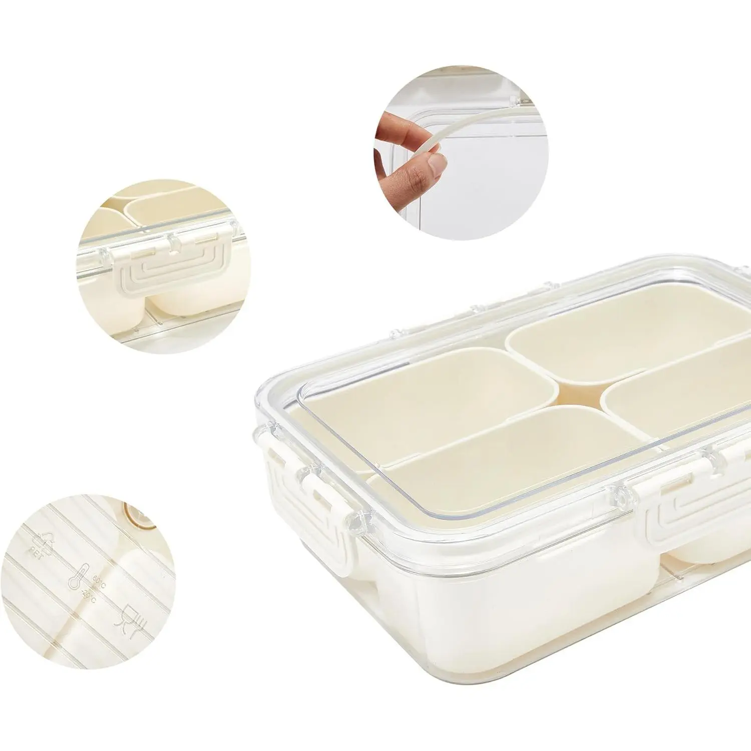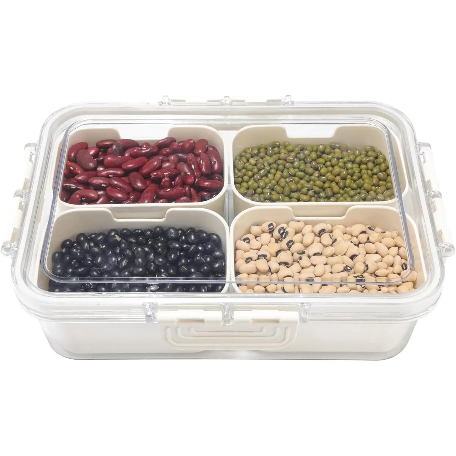 Versatile Serving Tray with Lid and Handle - Multi-Compartment Snackle Box for Organizing Fruits, Spices, Deli Meats, and - for Entertaining, Parties (4 Compartments)