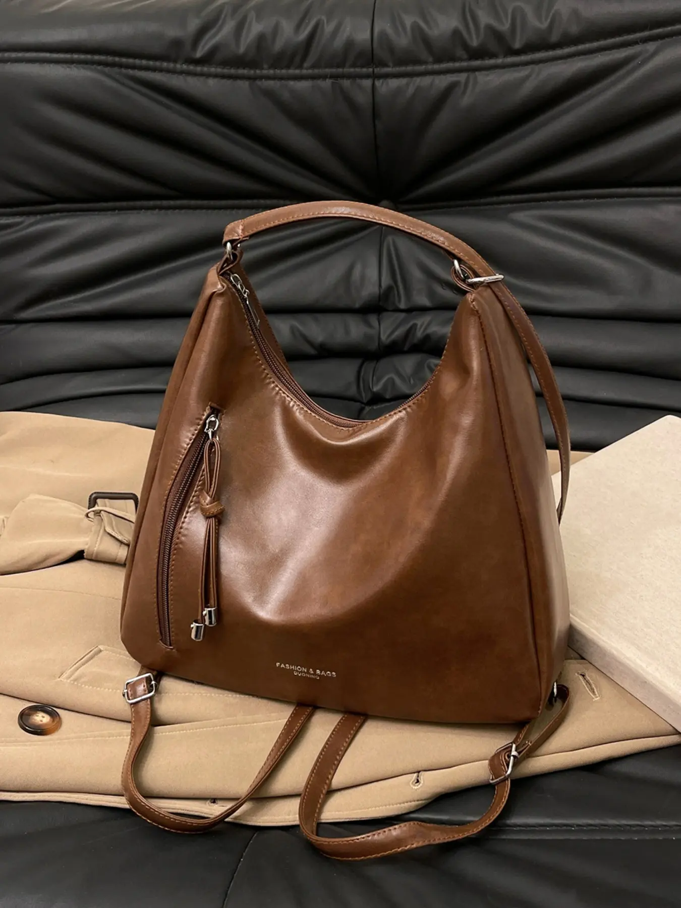 Simple and casual versatile texture shoulder bag, fashionable and personalized niche large capacity backpack, with external zipper pocket design, can accommodate tablets and headphones, suitable for commuting and shopping, Stylish Daypacks