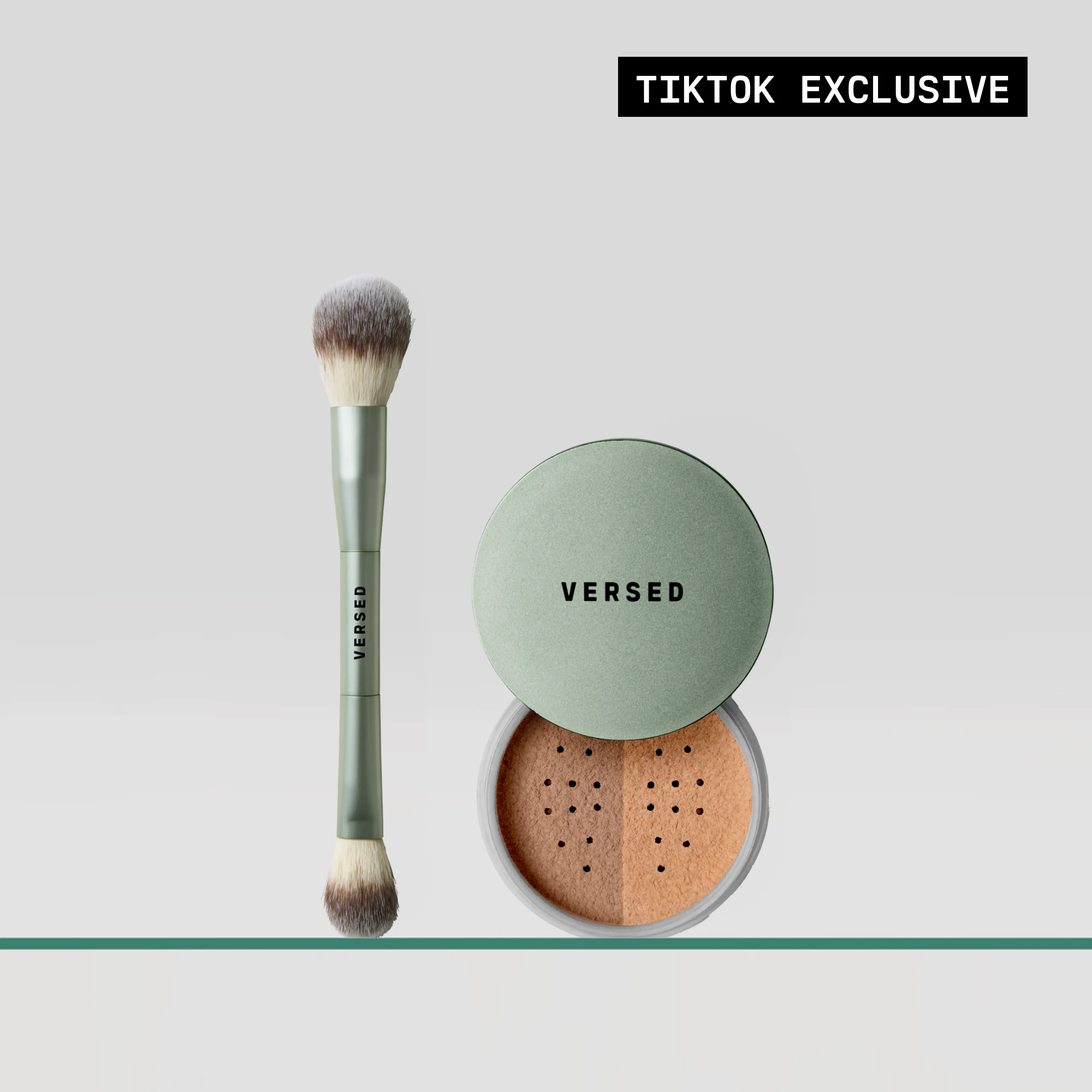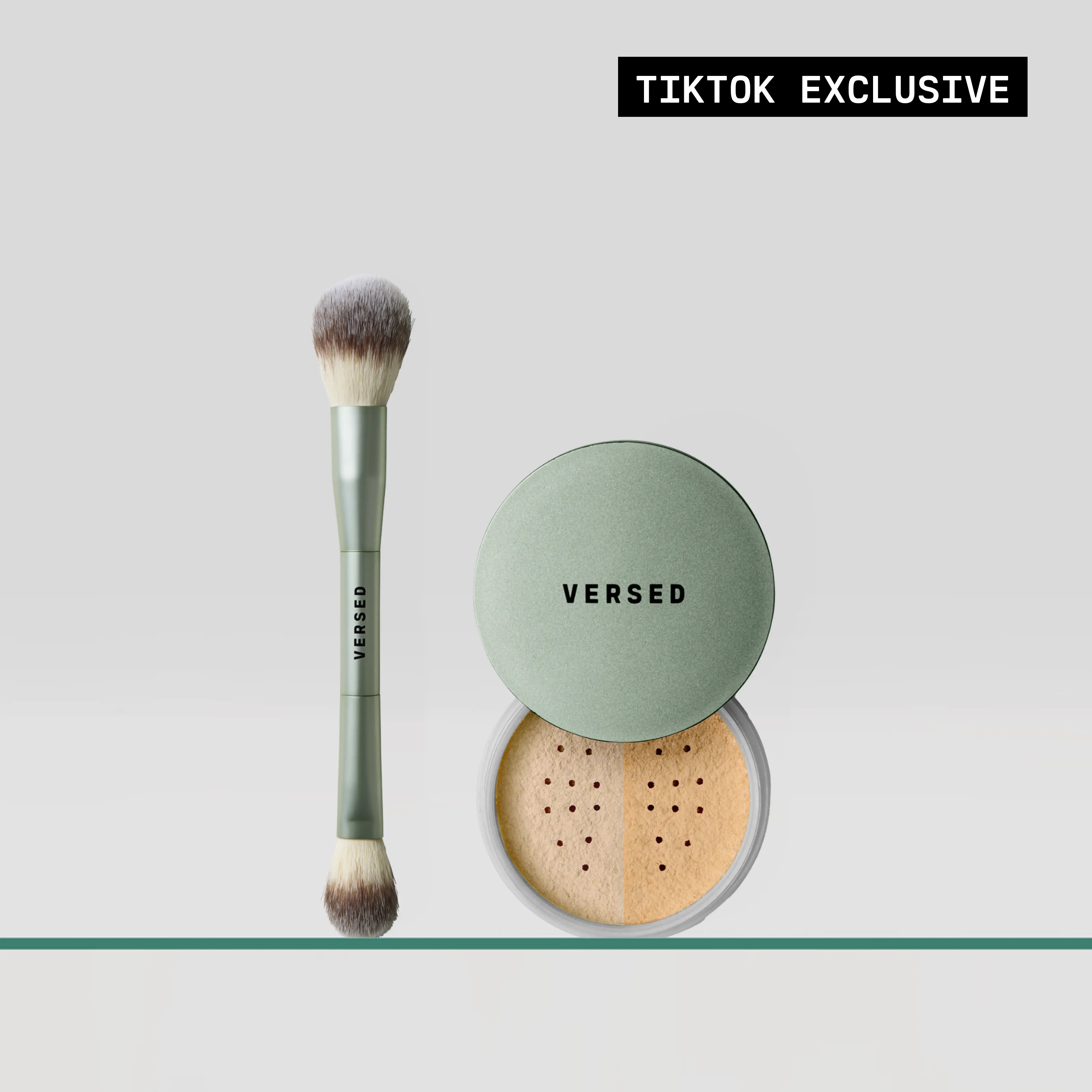 The easiest way to set your base without flattening your glow, this duo pairs our Smooth Finish Brightening Setting Powder with the Face Perfector Dual-Ended Brush for seamless, soft-focus application. Together, they help blur the look of pores, smooth texture, and lock makeup in place—without caking or creasing.