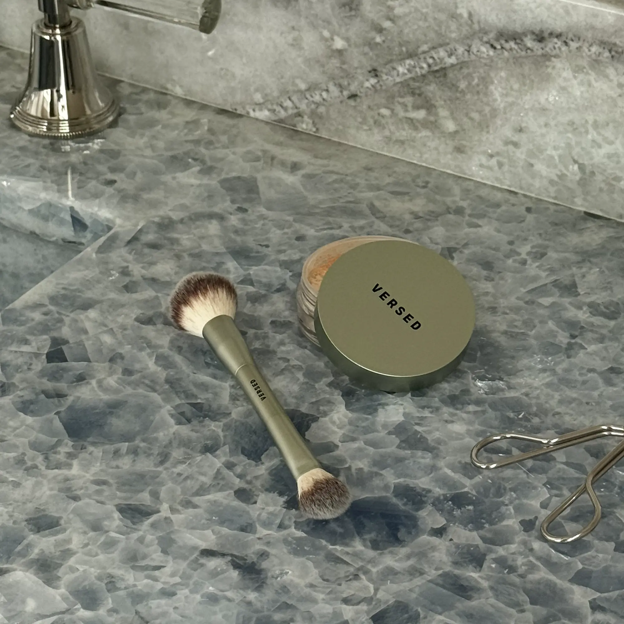 How: Swirl the fluffy end of the brush into powder for all-over setting, or use the flat end to press into targeted areas like under-eyes or the T-zone.